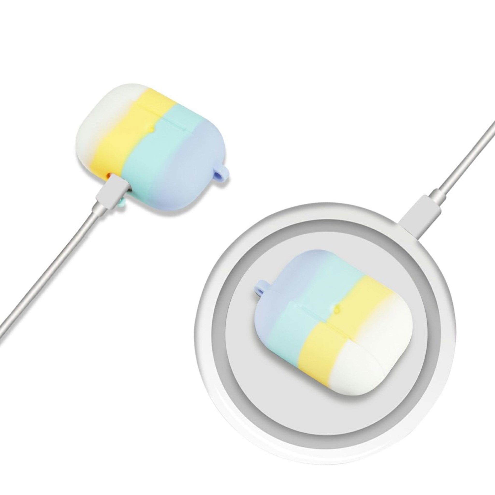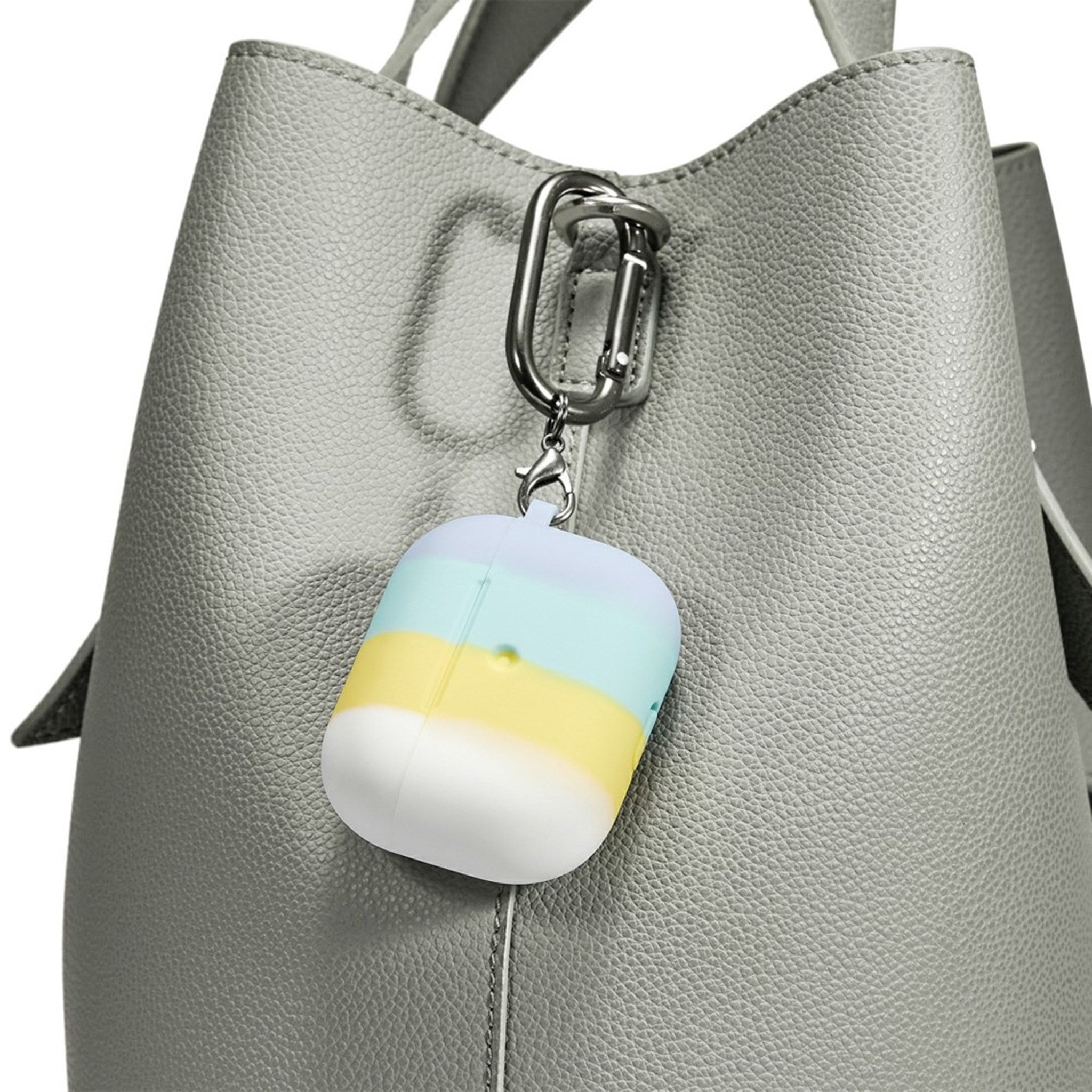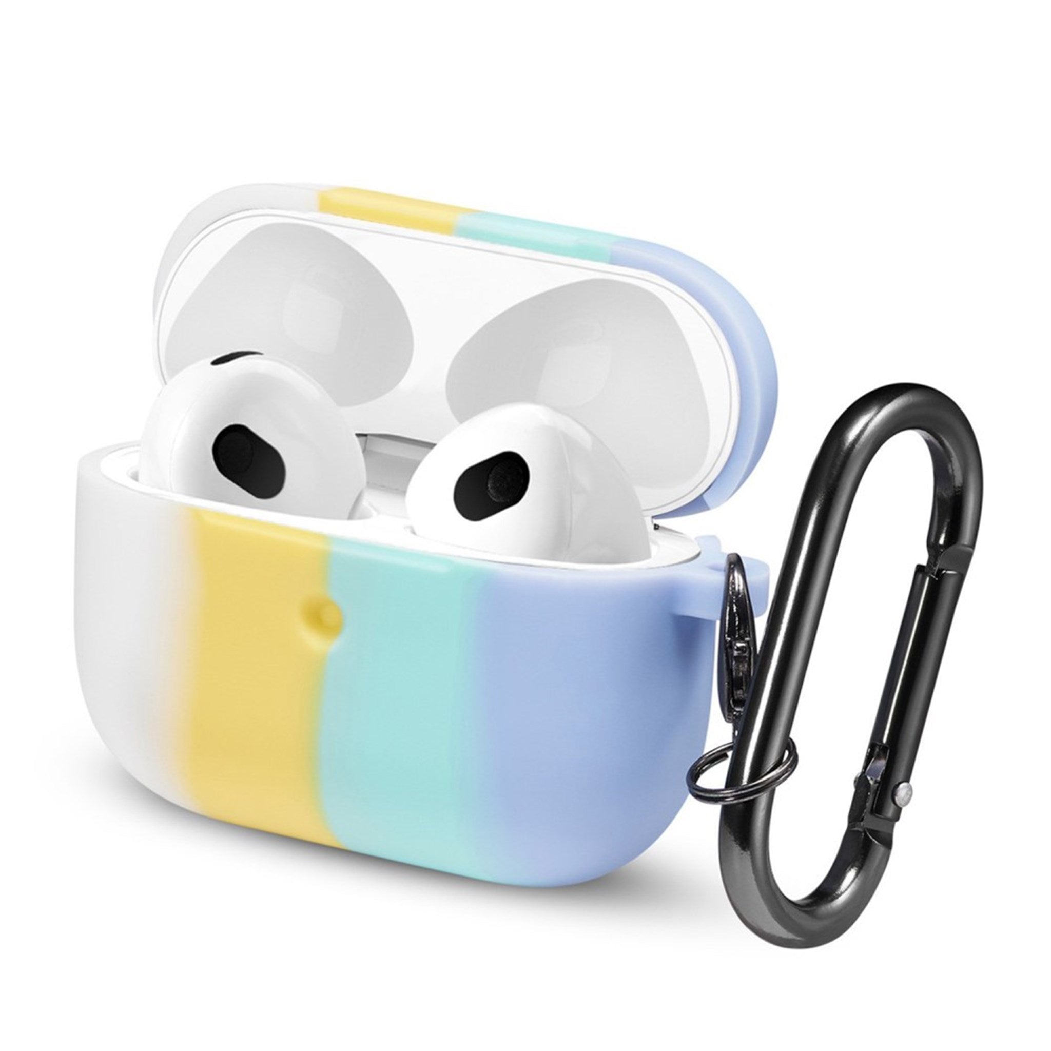 AirPods 3 rainbow gradient silicone case with carabiner - White / Blue