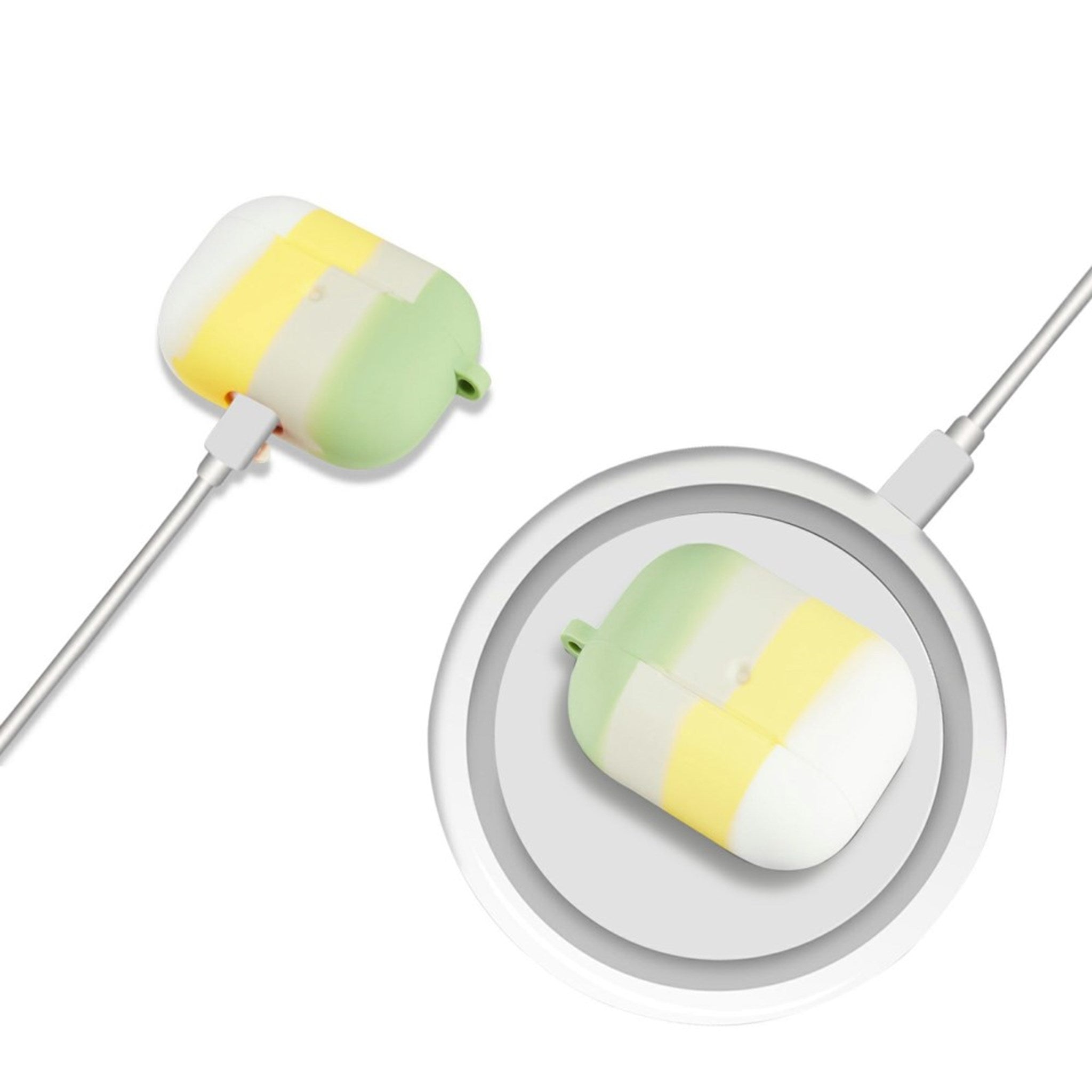 AirPods 3 rainbow gradient silicone case with carabiner - White / Light Green