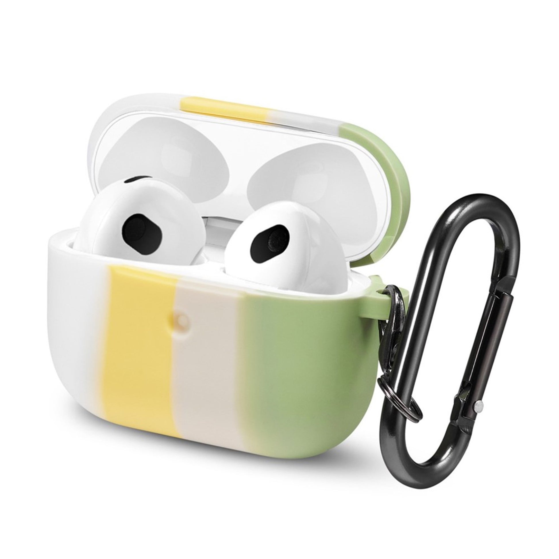Rainbow Soft Silicone Earphone Protective Case Shell with Carabiner for Airpods 3 - White / Light Green