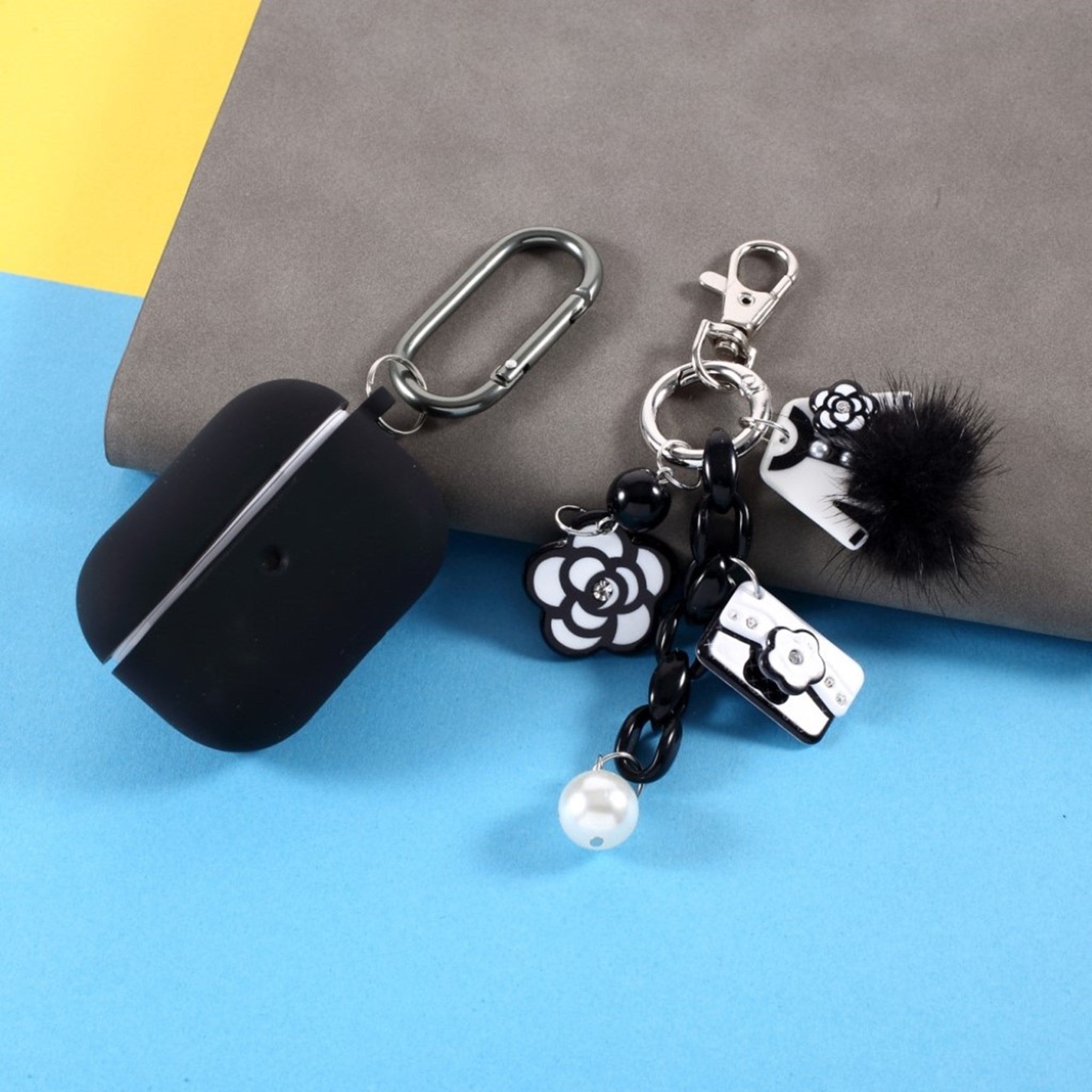 Airpods Pro durable case + cutesy décor - Black Flower Decor