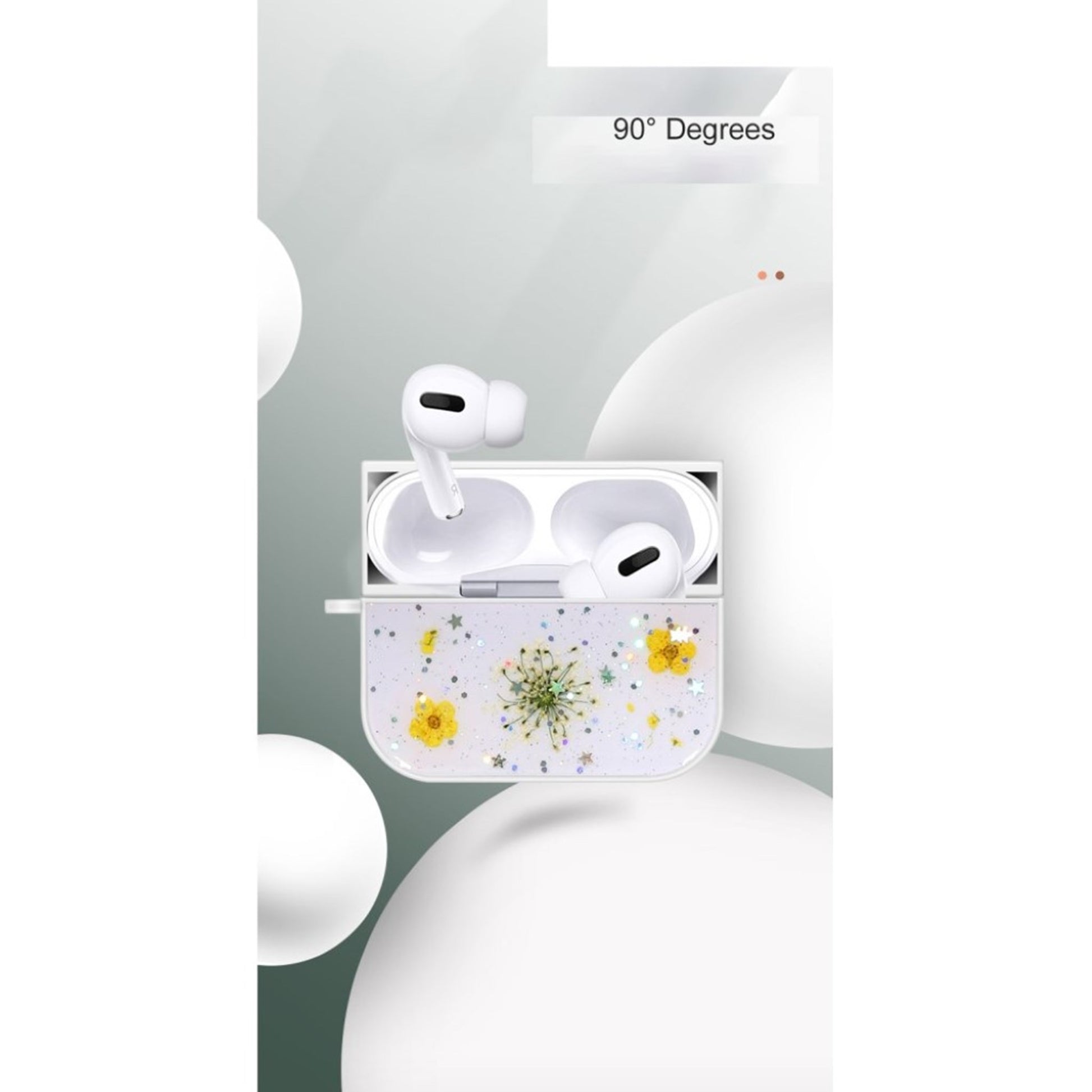 Flower Pattern + Glitter Sequins Design Earphone Cover Case for Apple AirPods Pro - Yellow