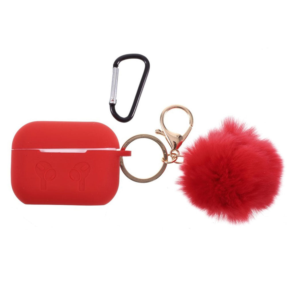 Silicone Protective Case with Hairy Ball Buckle for Apple AirPods Pro - Red