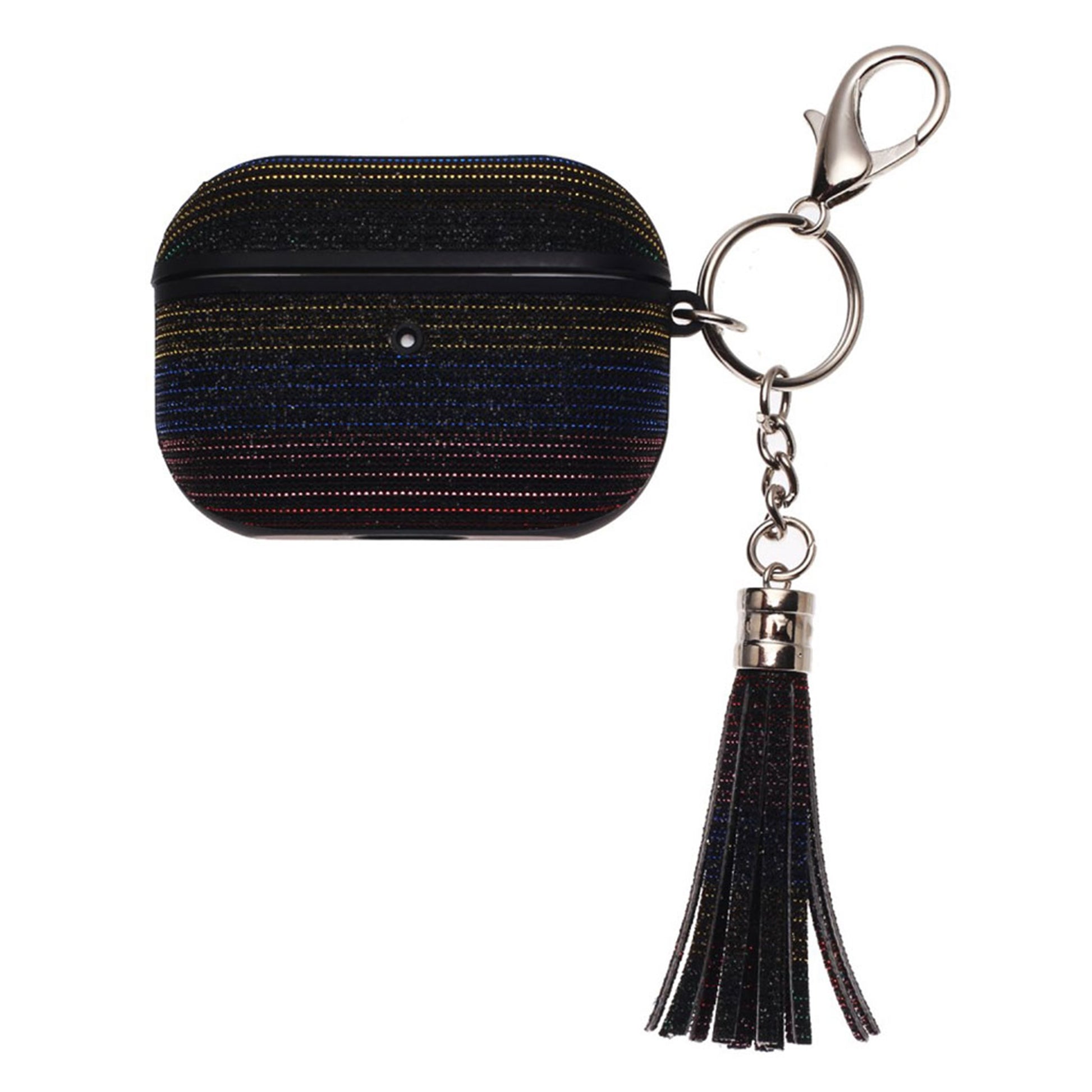 Airpods Pro silk yarn décor leather case - Darker Black