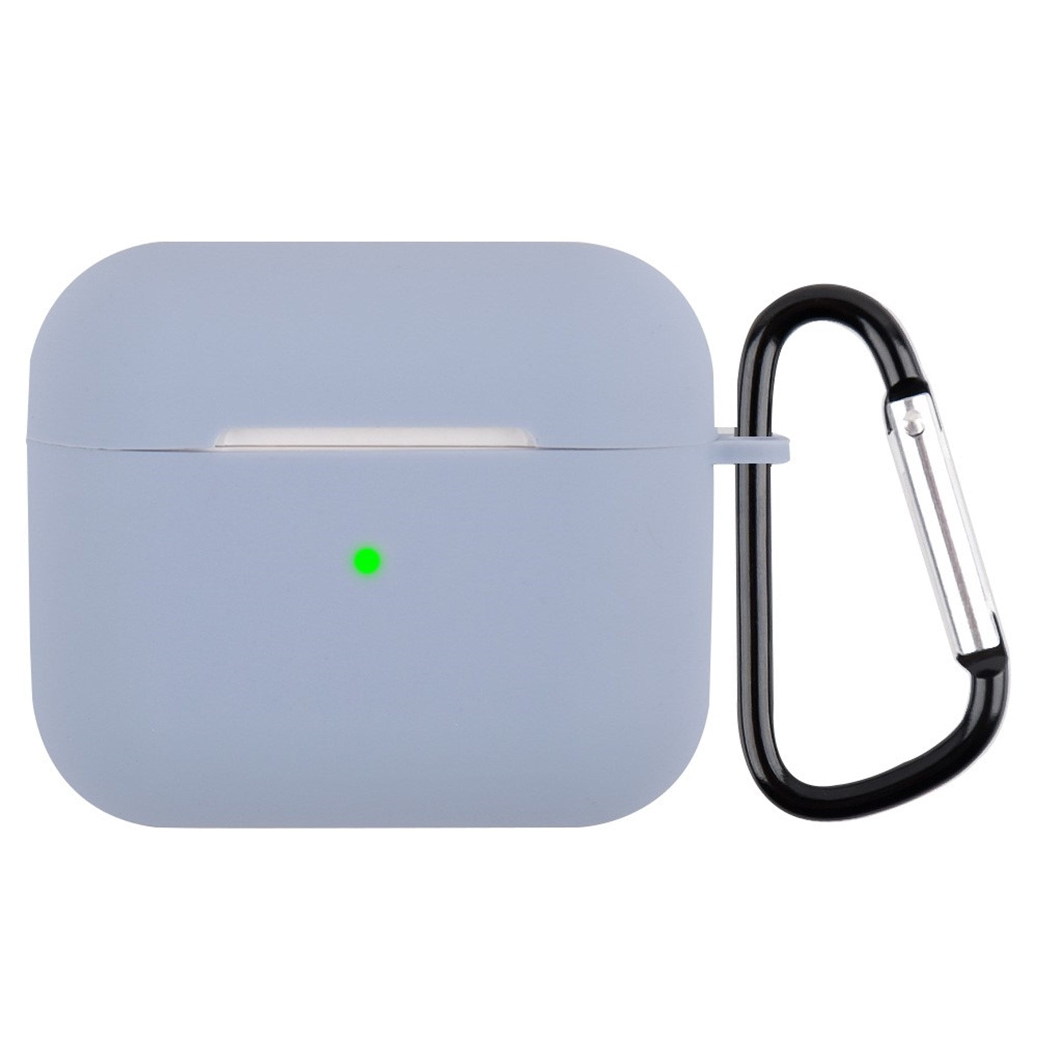 Scratch Resistant Full Protective Silicone Skin Earphone Case Cover with Carabiner for Apple AirPods 3 - Light Purple