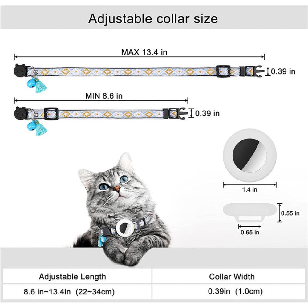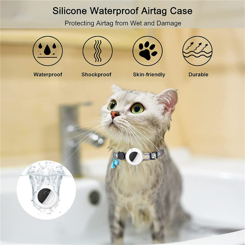 Waterproof Silicone Case for AirTag Adjustable Pet Collar GPS Cat Collar with Tassel / Film - White