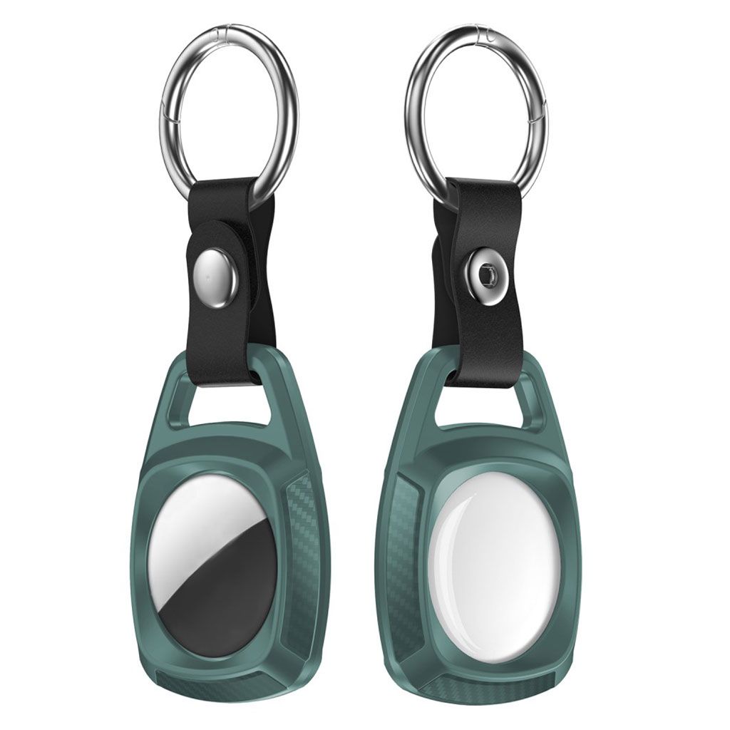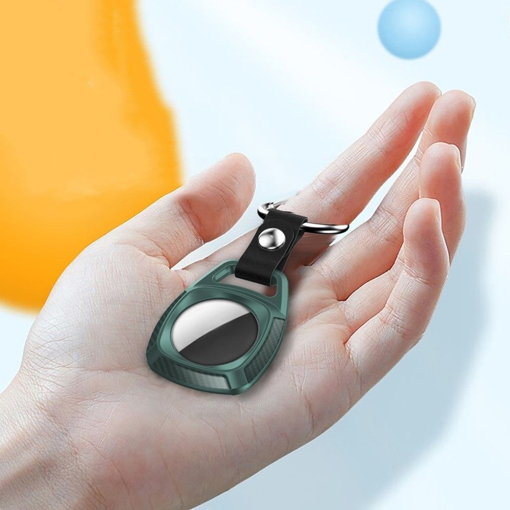 Carbon Fiber TPU Protective Cover with Keychain Ring for Apple AirTag - Green