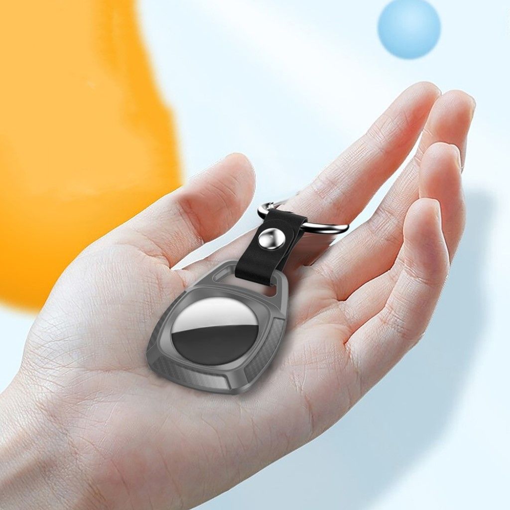 AirTags carbon fiber TPU cover with keychain - Grey