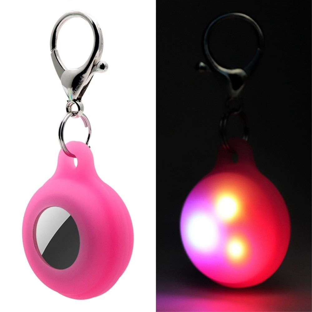 For Apple AirTag Locator Anti-lost Luminous Silicone Case Protective Cover with Hanging Buckle - Pink