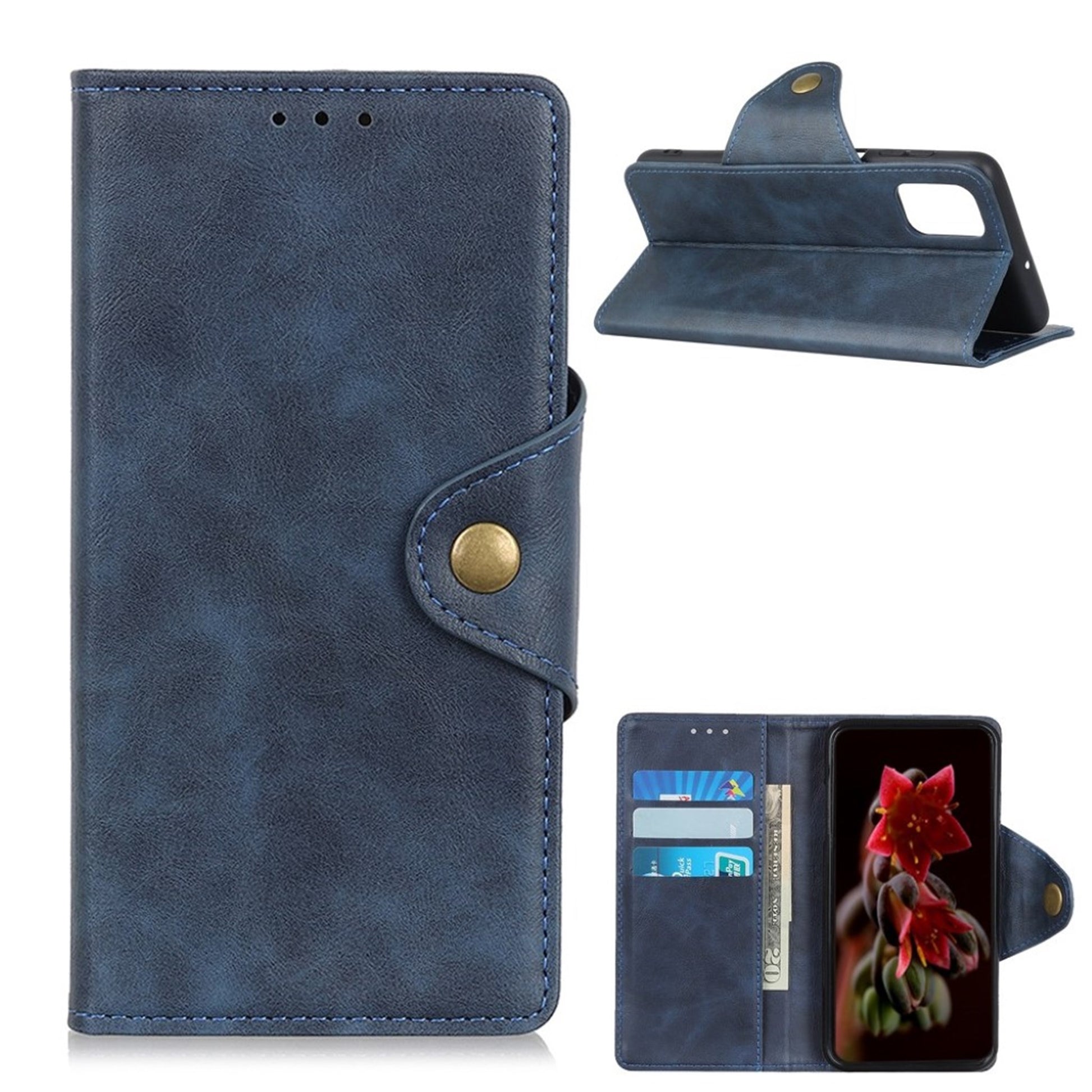 The Alpha case for Samsung Galaxy M51 is a classic folio style case made from artificial leather. It features a magnetic brass clasp and has three card slots a larger pocket for holding credit cards and money. The case can be folded to hold the Samsung Galaxy M51 for hands-free viewing.