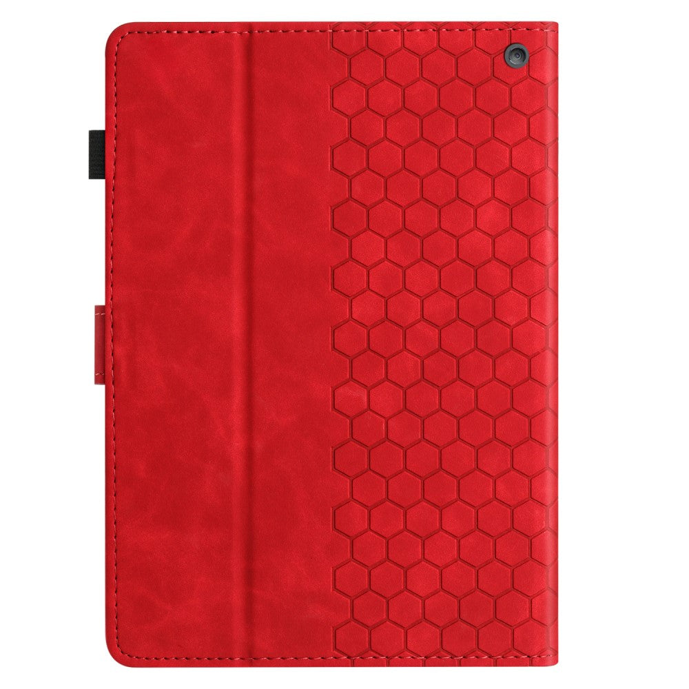 Amazon Kindle Fire Max 11 2023 Case Honeycomb Printed Leather Tablet Cover with Card Slot - Red