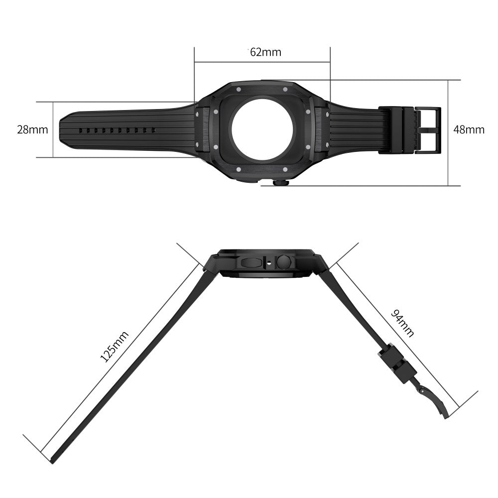 Apple Watch 49mm / 45mm / 44mm / 42mm T Watch Band with Metal Watch Case Wrist Strap - Black