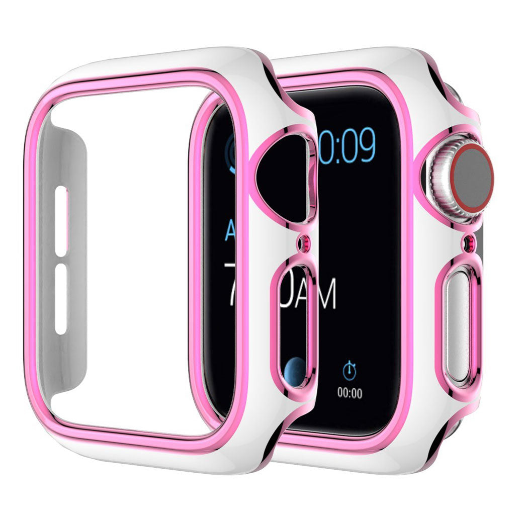 Electroplating PC Frame Protective Cover for Apple Watch Series 4/5/6/SE 40mm - White / Pink