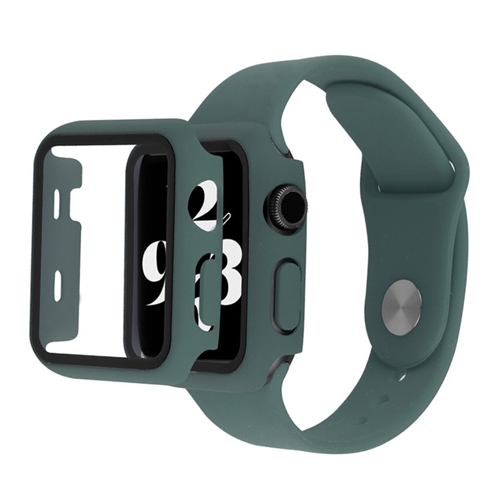 3 in 1 Anti-Scratch Tempered Glass Screen Protector + Drop-Proof Watch Cover + Watch Band for Apple Watch Series 4 40mm/5 40mm/6 40mm/SE 40mm - Dark Green