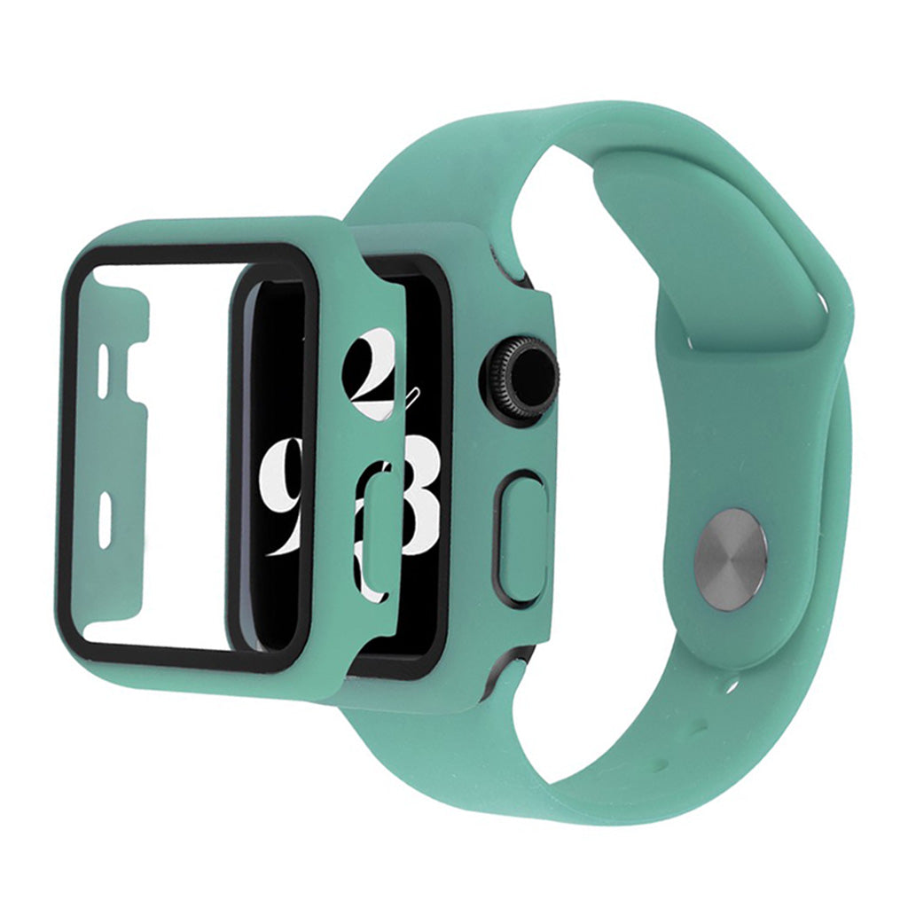 3 in 1 Anti-Scratch Tempered Glass Screen Protector + Drop-Proof Watch Cover + Watch Band for Apple Watch Series 4 40mm/5 40mm/6 40mm/SE 40mm - Green
