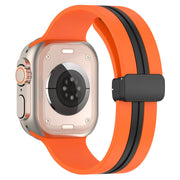 For Apple Watch Ultra 49mm / Series 8 / 7 45mm / 6 / 5 / 4 / SE / SE (2022) 44mm / 3 / 2 / 1 42mm Dual Color Magnetic Buckle Strap Silicone Watch Band - Orange / Black