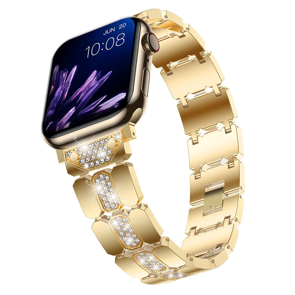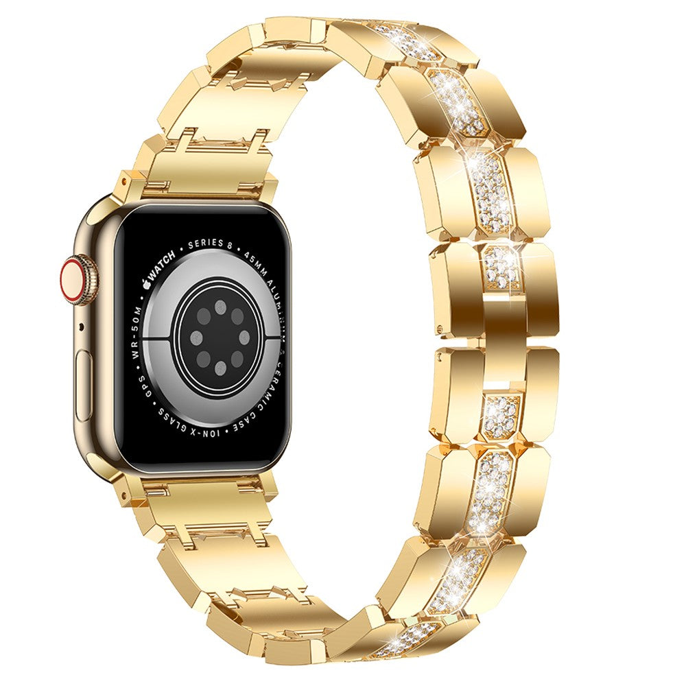 For Apple Watch Ultra 49mm / Series 8 / 7 45mm / 6 / 5 / 4 / SE / SE (2022) 44mm / 3 / 2 / 1 42mm Watch Band Rhinestone Decor Replace Metal Strap - Gold