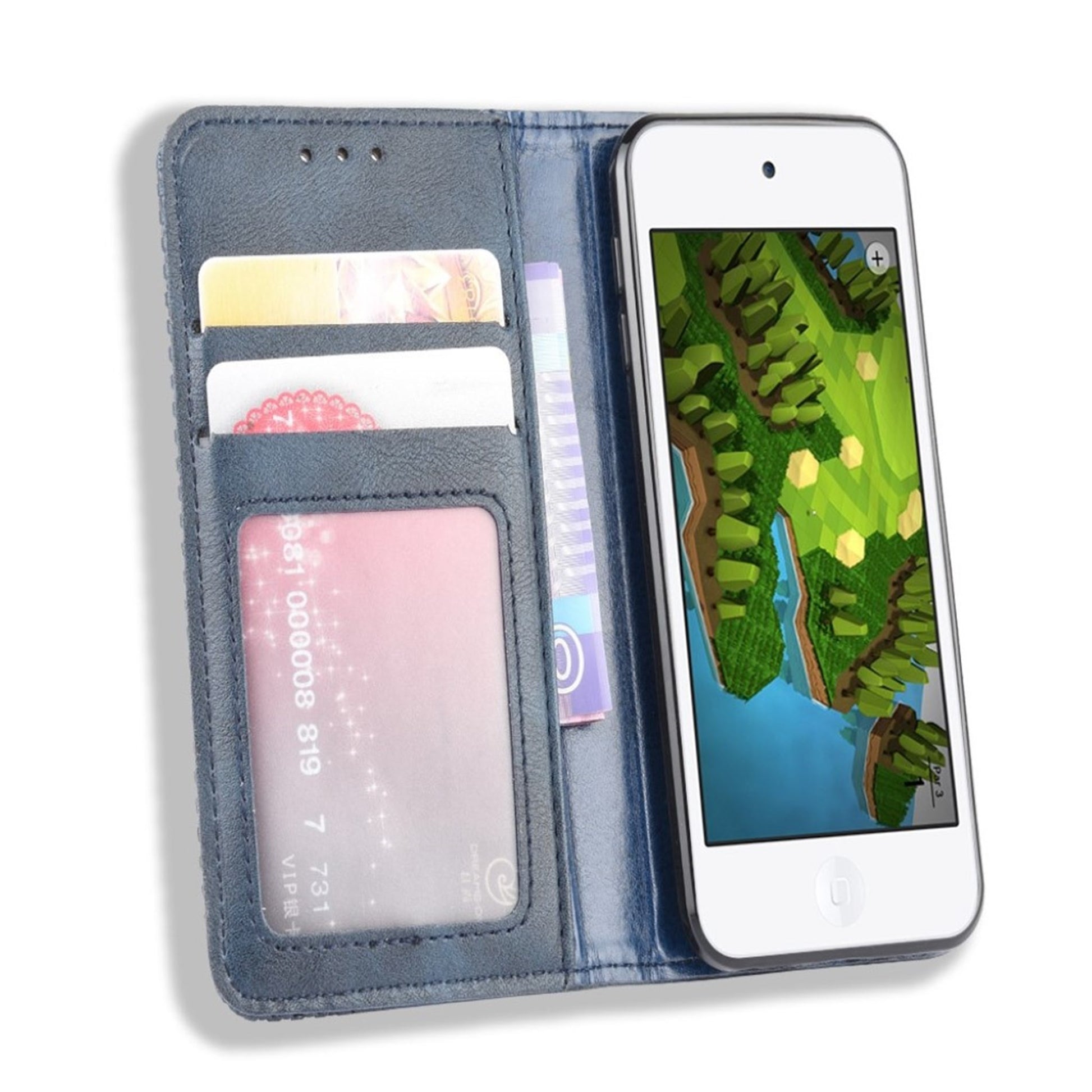 Bofink vintage style leather flip case for iPhone Touch (2019). This case features 3 card slots, a cash pocket and support for hands-free video viewing. Manifactured from good quality, soft PU leather with beautiful details this case provides full protection for the iPhone Touch (2019).