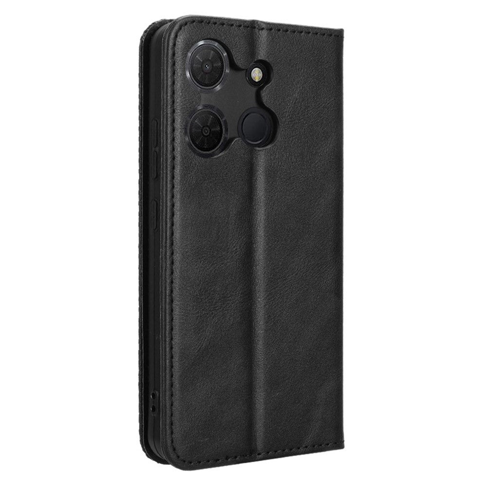 It has a magnetic strip that ensures that the case remains clothes, despite not having the regular strap that reaches around.