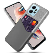 Stylish back cover for Xiaomi Redmi Note 12 with functional slim design. This case is created from cloth, plastic and PU leather and features a card slot for easy access to your credit card while protecting your Xiaomi Redmi Note 12.