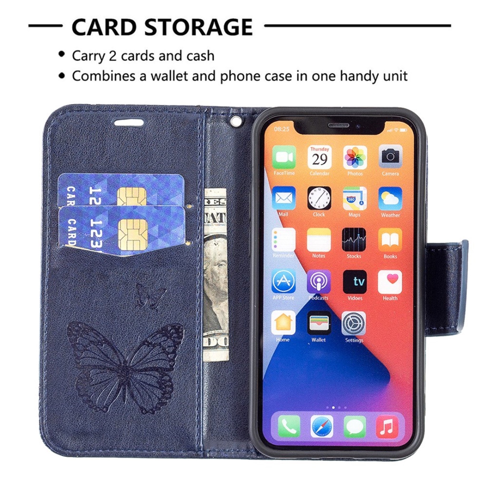 Fashionable leather case with beautiful butterfly imprint. This case for iPhone 13 has a couple of card slots and a larger pocket. It comes with a handy strap and supports hands-free viewing. Made from PU leather this simple flip case provides excellent protection and a stylish look for your iPhone 13.
