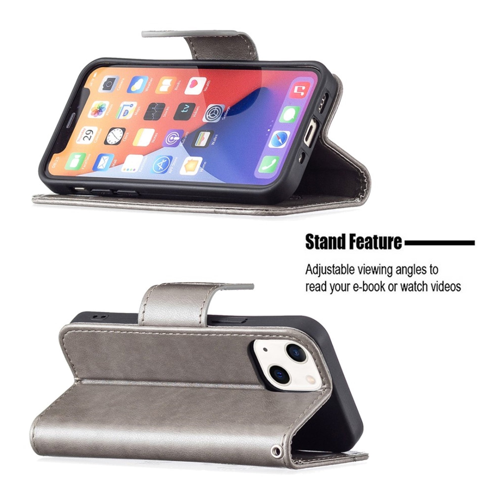 Fashionable leather case with beautiful butterfly imprint. This case for iPhone 13 has a couple of card slots and a larger pocket. It comes with a handy strap and supports hands-free viewing. Made from PU leather this simple flip case provides excellent protection and a stylish look for your iPhone 13.