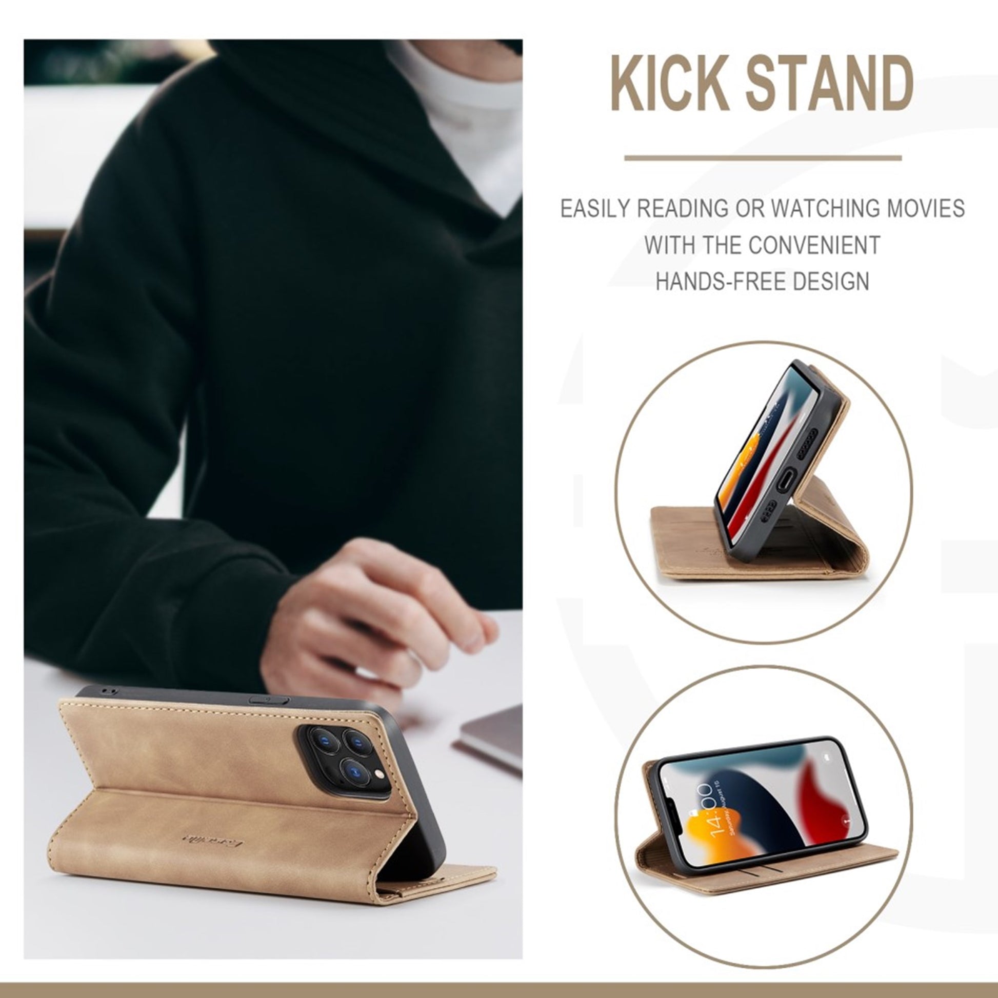 The CaseMe Vintage Case is made from soft, vintage artificial leather and also contains a hard TPU shell - which makes the case even more durable and shockproof. The Vintage Case for iPhone 13 Pro Max comes with 2 credit card slots and an additional slot for cash, as well as a foldable stand which allows for hands-free usage.