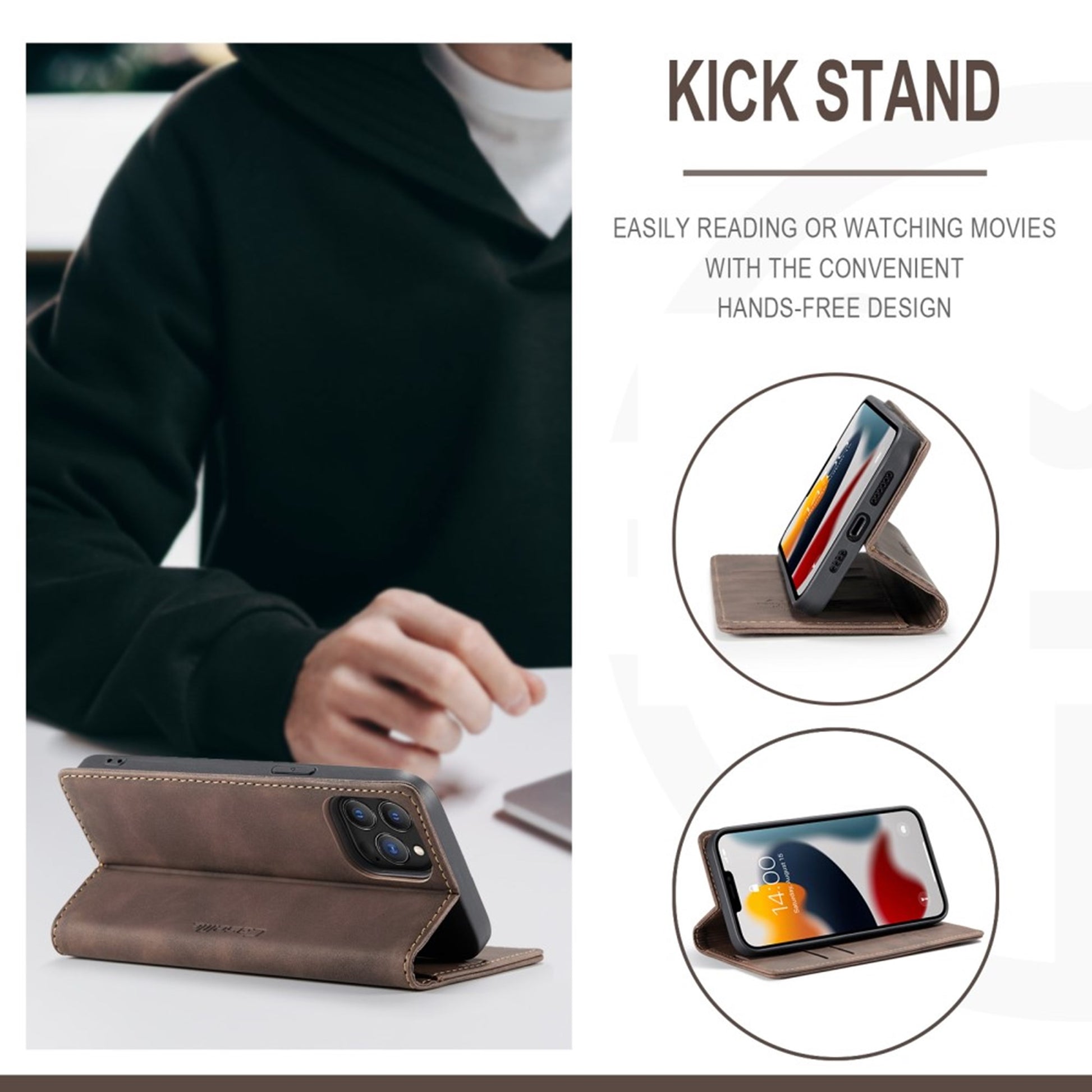 The CaseMe Vintage Case is made from soft, vintage artificial leather and also contains a hard TPU shell - which makes the case even more durable and shockproof. The Vintage Case for iPhone 13 Pro comes with 2 credit card slots and an additional slot for cash, as well as a foldable stand which allows for hands-free usage.