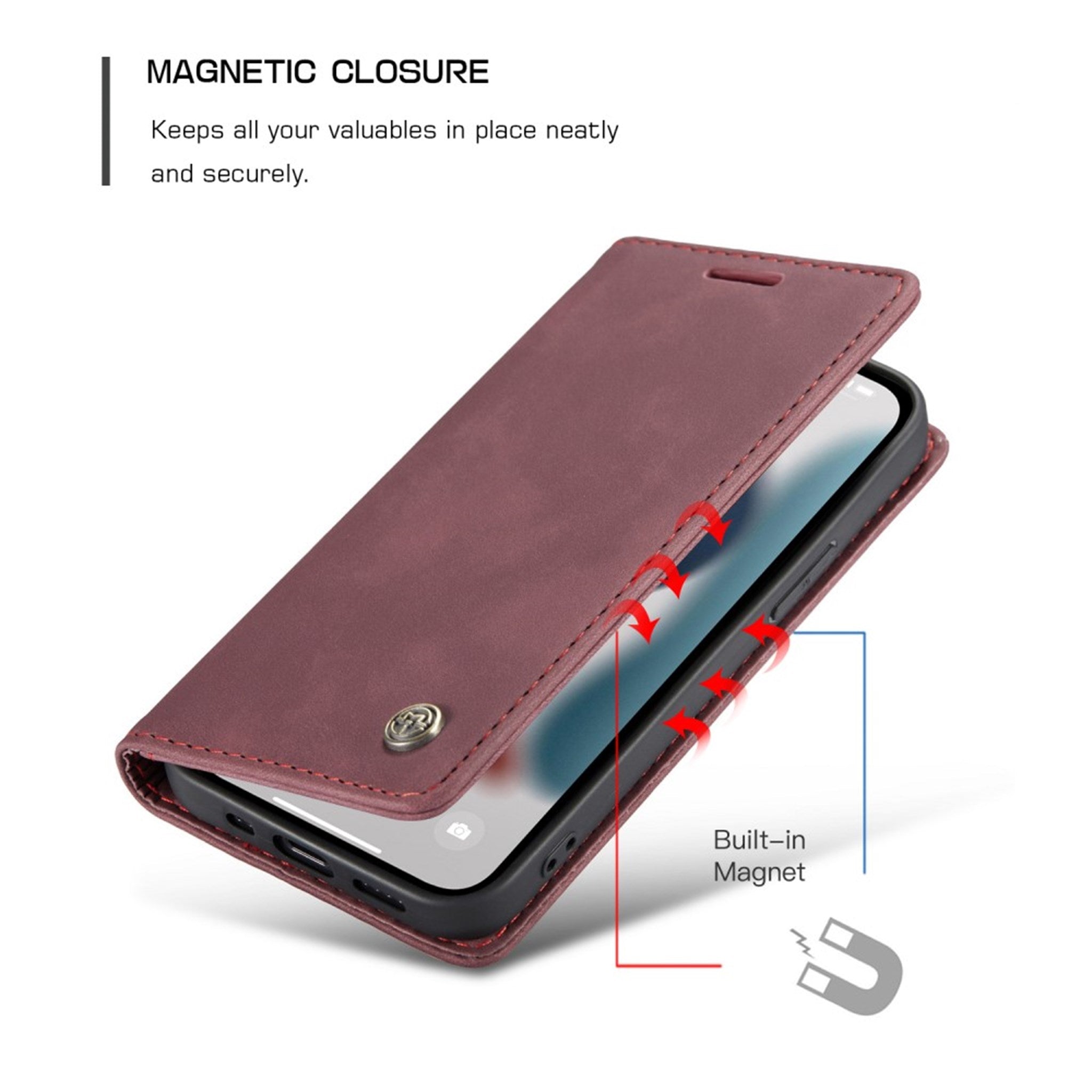 The CaseMe Vintage Case is made from soft, vintage artificial leather and also contains a hard TPU shell - which makes the case even more durable and shockproof. The Vintage Case for iPhone 13 Pro comes with 2 credit card slots and an additional slot for cash, as well as a foldable stand which allows for hands-free usage.