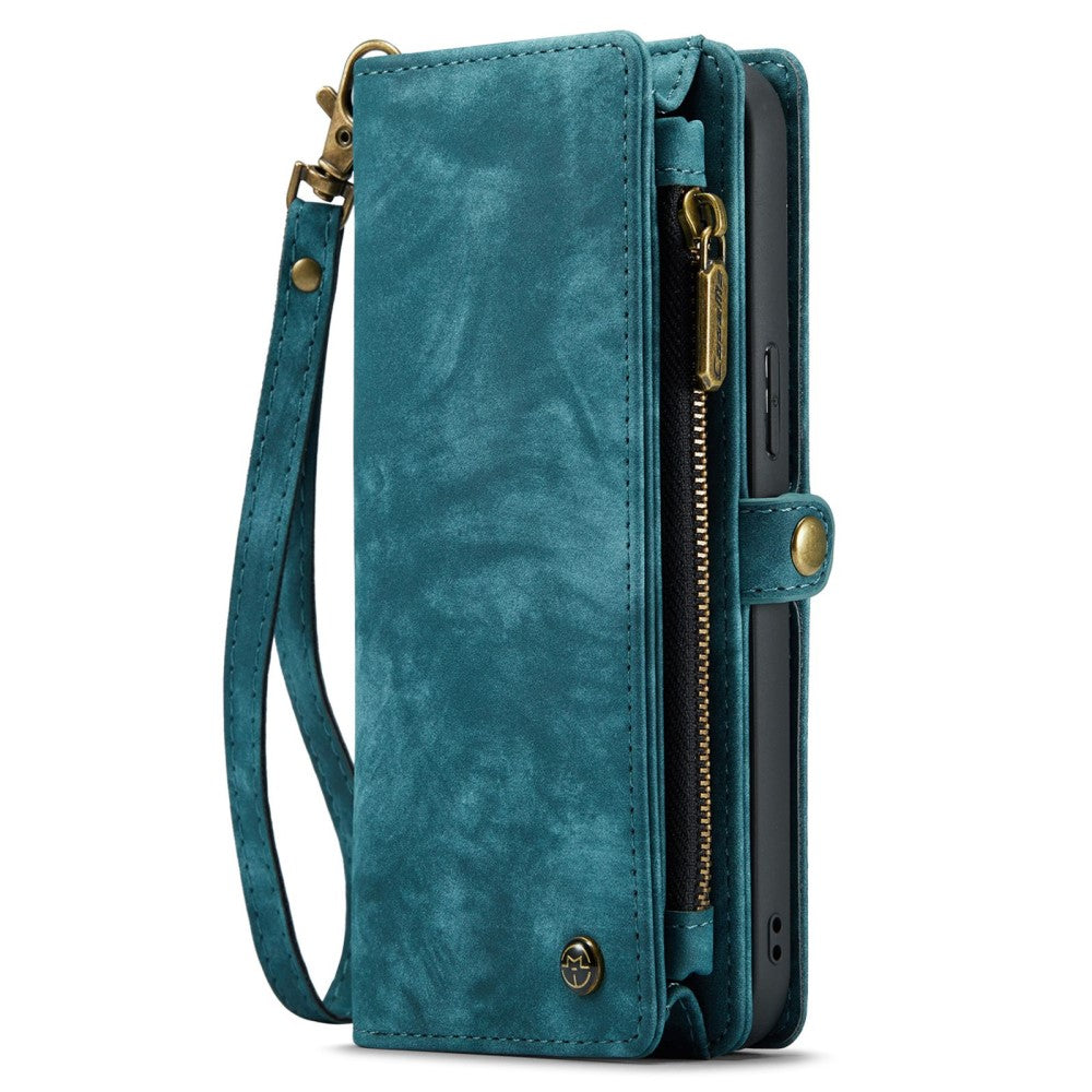 CaseMe iPhone 14 Pro Max Zipper Wallet Case is made from durable, high quality flannel leather. With its detachable 2-in-1 design, the leather case contains a leather-coated hard cover that attaches securely to the case with a magnet. The Retro Wallet case contains multiple slots for cards as well as a zipper compartment where you can securely store cash. Keep all your daily necessities organized in one place, and do it in style.