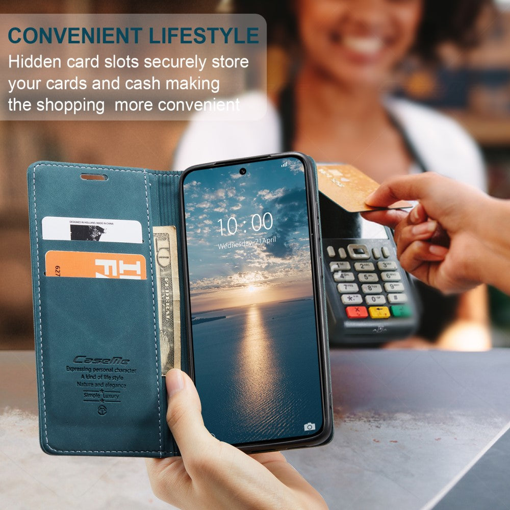 The CaseMe Vintage Case is made from soft, vintage artificial leather and also contains a hard TPU shell - which makes the case even more durable and shockproof. The Vintage Case for Xiaomi 13 comes with 2 credit card slots and an additional slot for cash, as well as a foldable stand which allows for hands-free usage.