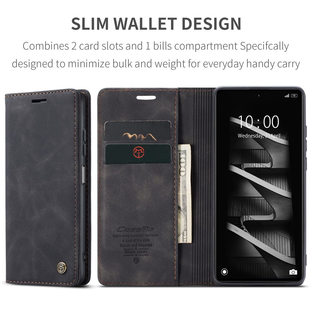 The CaseMe Vintage Case is made from soft, vintage artificial leather and also contains a hard TPU shell - which makes the case even more durable and shockproof. The Vintage Case for Xiaomi Poco X5 Pro / Redmi Note 12 Pro / Note 12 Pro Speed comes with 2 credit card slots and an additional slot for cash, as well as a foldable stand which allows for hands-free usage.