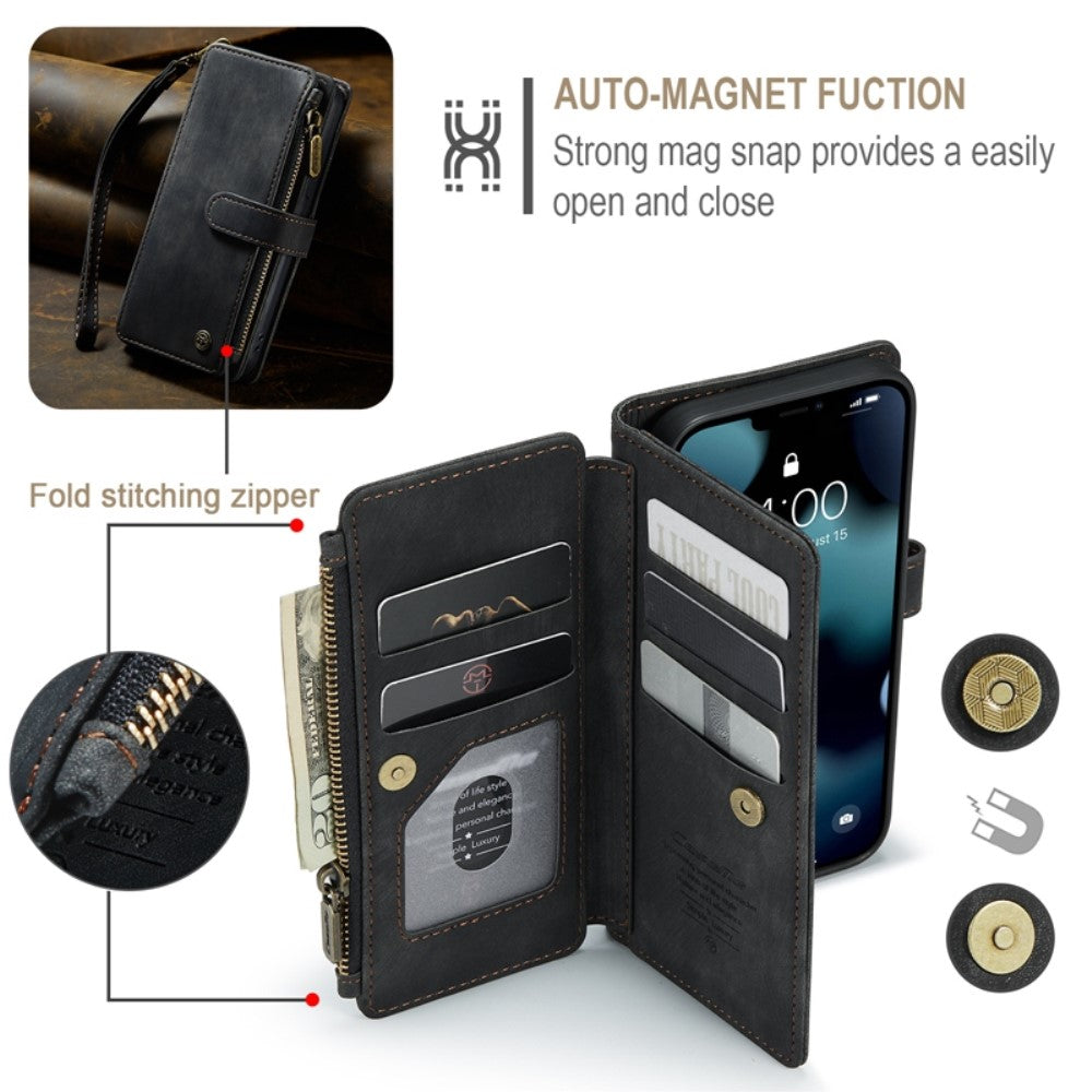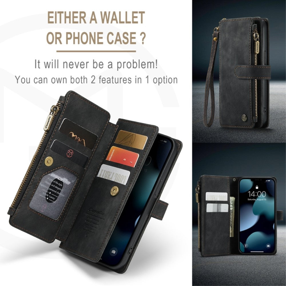 CaseMe zipper-wallet phone case for iPhone 13 Pro - Black