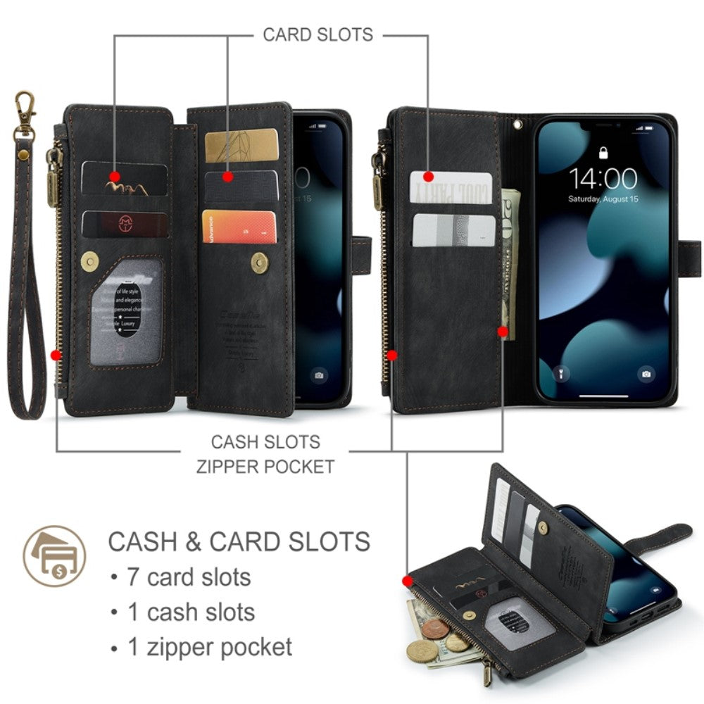 CaseMe zipper-wallet phone case for iPhone 13 Pro Max - Black