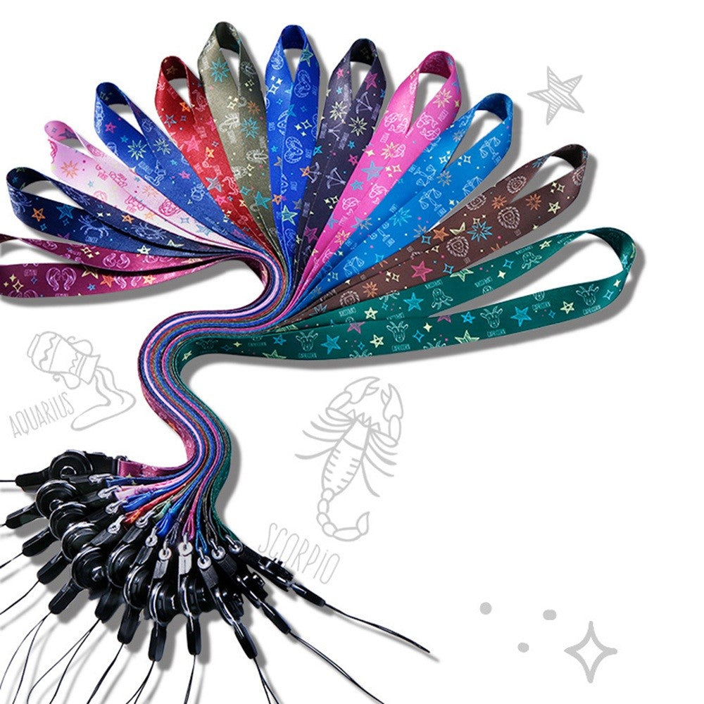 12 Constellations Cartoon Printed Rotating Buckle Lanyard Detachable Mobile Phone Name Tag Neck Strap - Aquarius