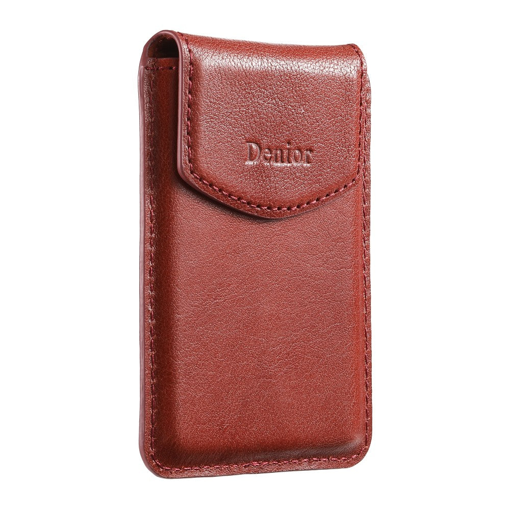 DENIOR V14 Magnetic Card Holder Genuine Cow Leather Phone Back Card Case - Red