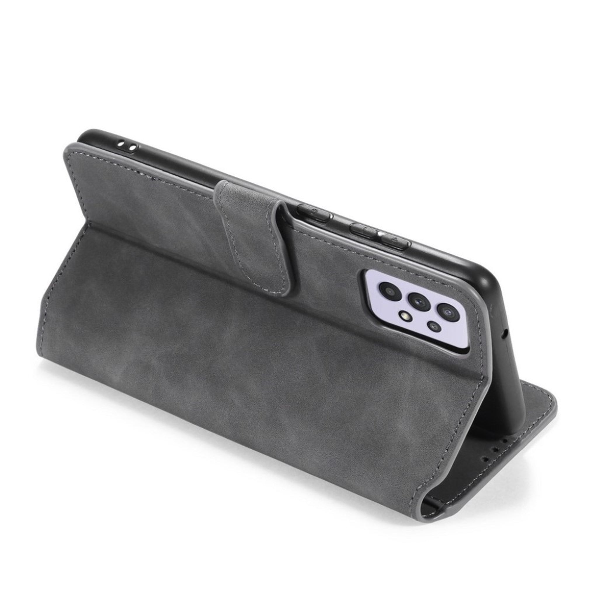 Retro wallet-style leather case for Samsung Galaxy A32 5G. The DG.MING Retro case is made from vintage looking PU leather and features three card slots. It has a magnetic clasp and can be folded to hold the Samsung Galaxy A32 5G in horizontal position for video viewing.