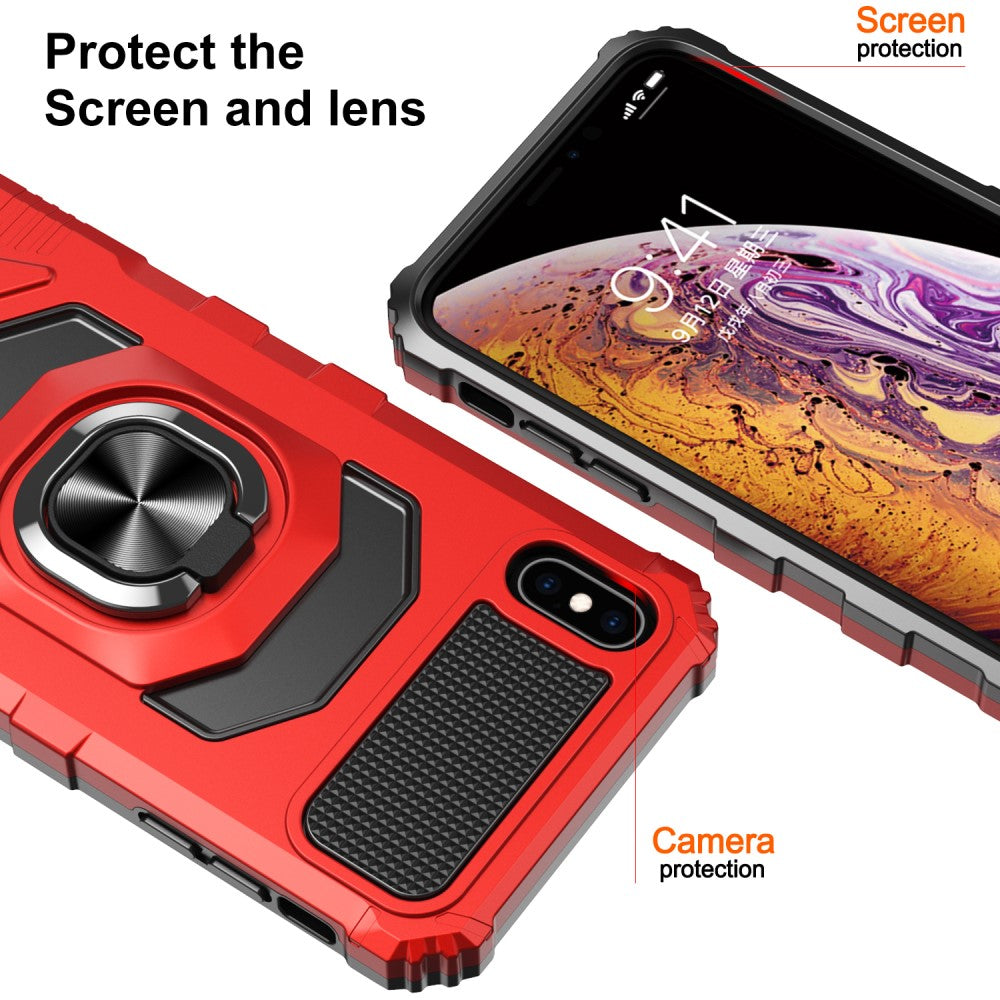 Durable hard plastic iPhone X / iPhone Xs cover with soft inside and kickstand - Red