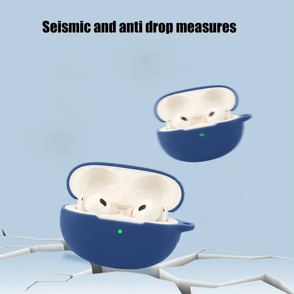 Dust Cover for Realme Buds Air 6 Pro Bluetooth Earphones Silicone Case with Anti-Lost Buckle - Blackish Green