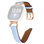 For Fitbit Versa 3 / Versa 4 / Sense / Sense 2 Wrist Band Rhinestone D-shape Connector Split Leather Adjustable Strap with Rose Gold Buckle - Blue