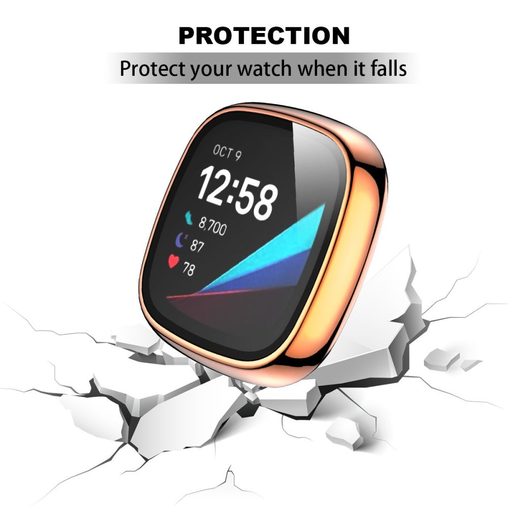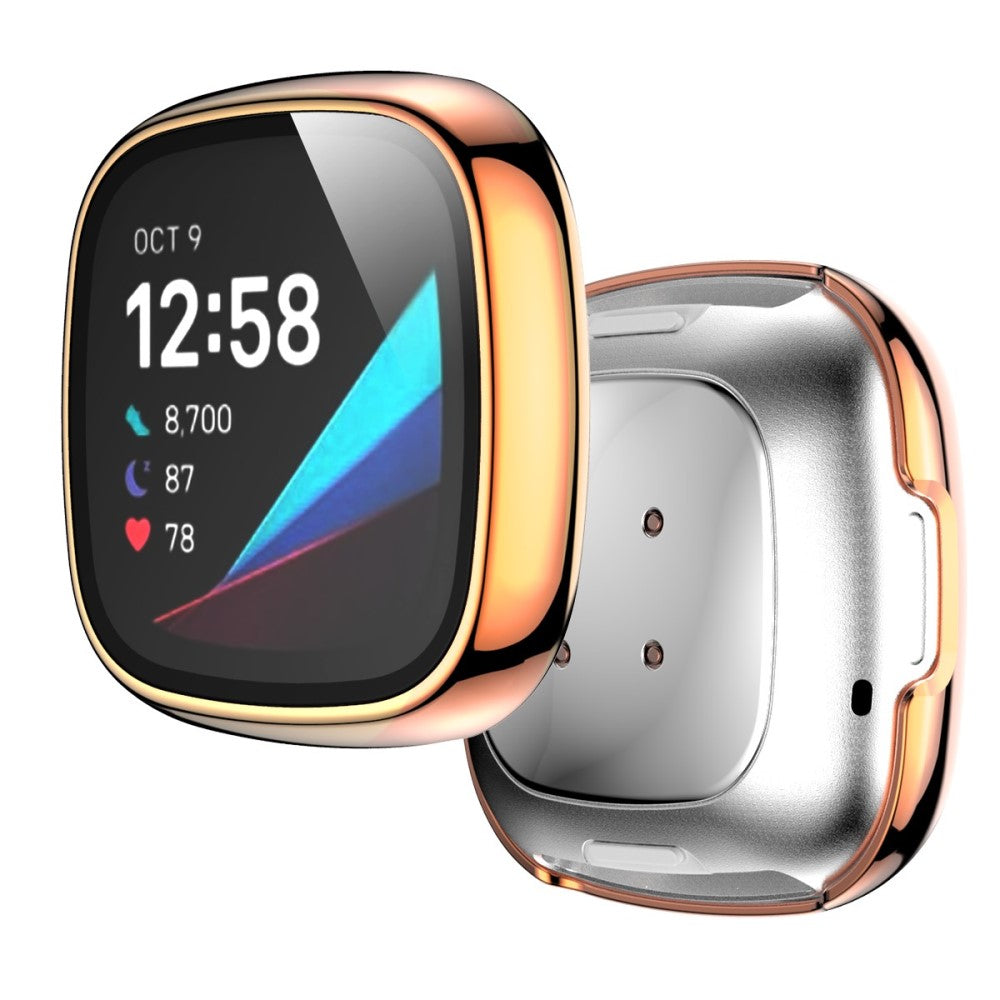 Fitbit Sense / Versa 3 electroplating cover with tempered glass - Rose Gold