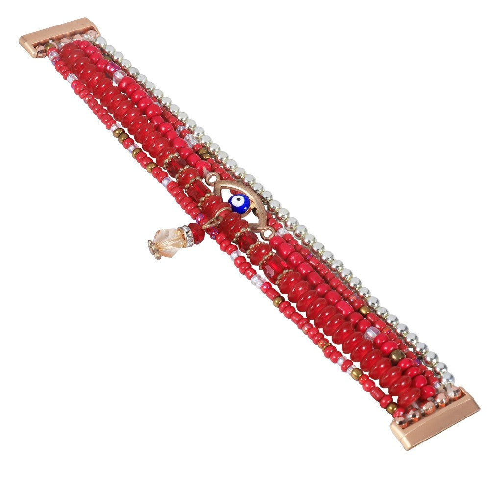 Fitbit Sense / Versa 3 multi-layered bead with eye décor watch strap - Red