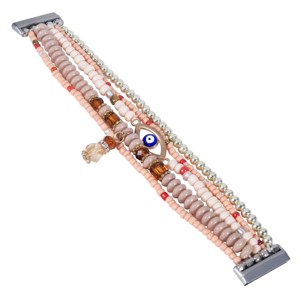 Fitbit Sense / Versa 3 multi-layered bead with eye décor watch strap - Retro Pink