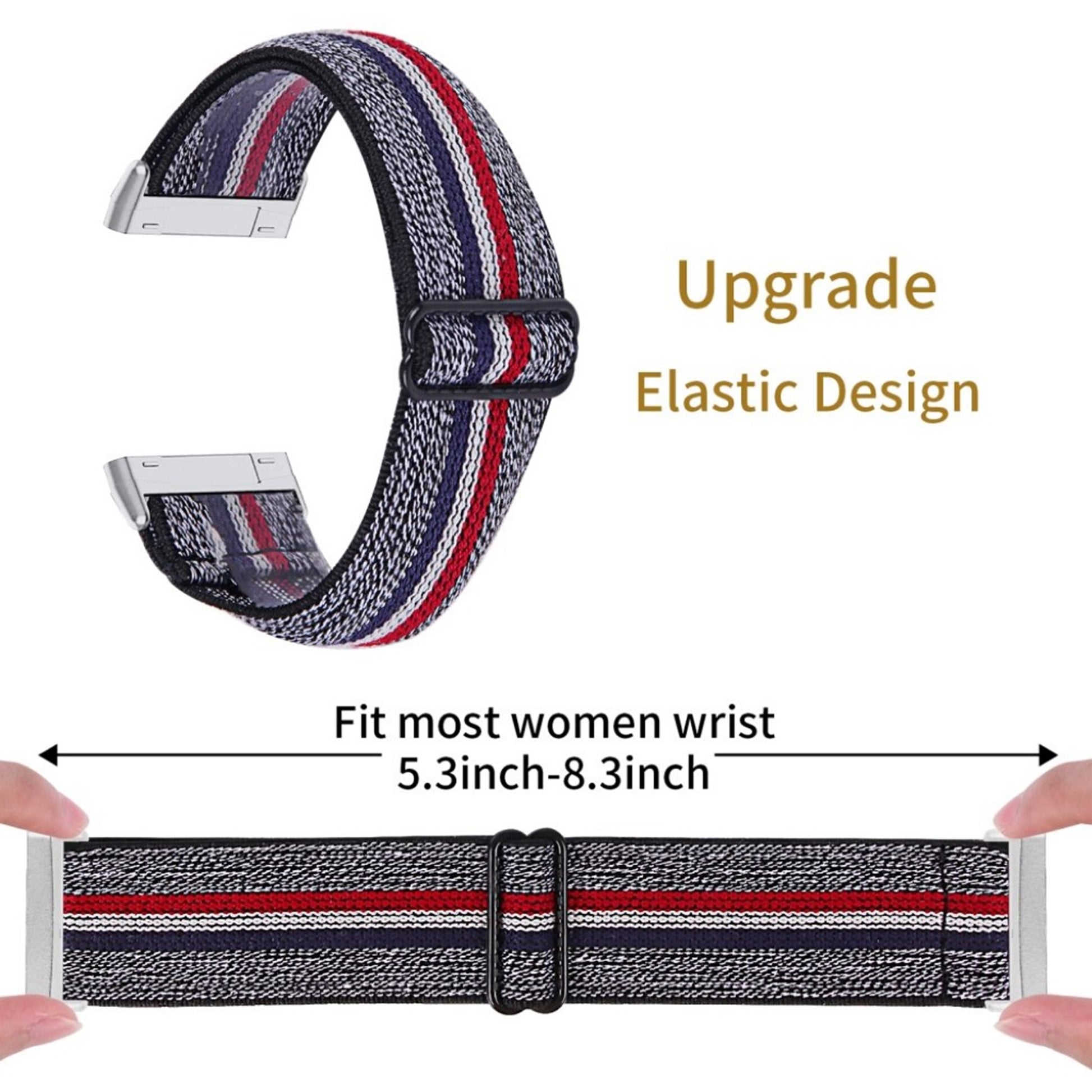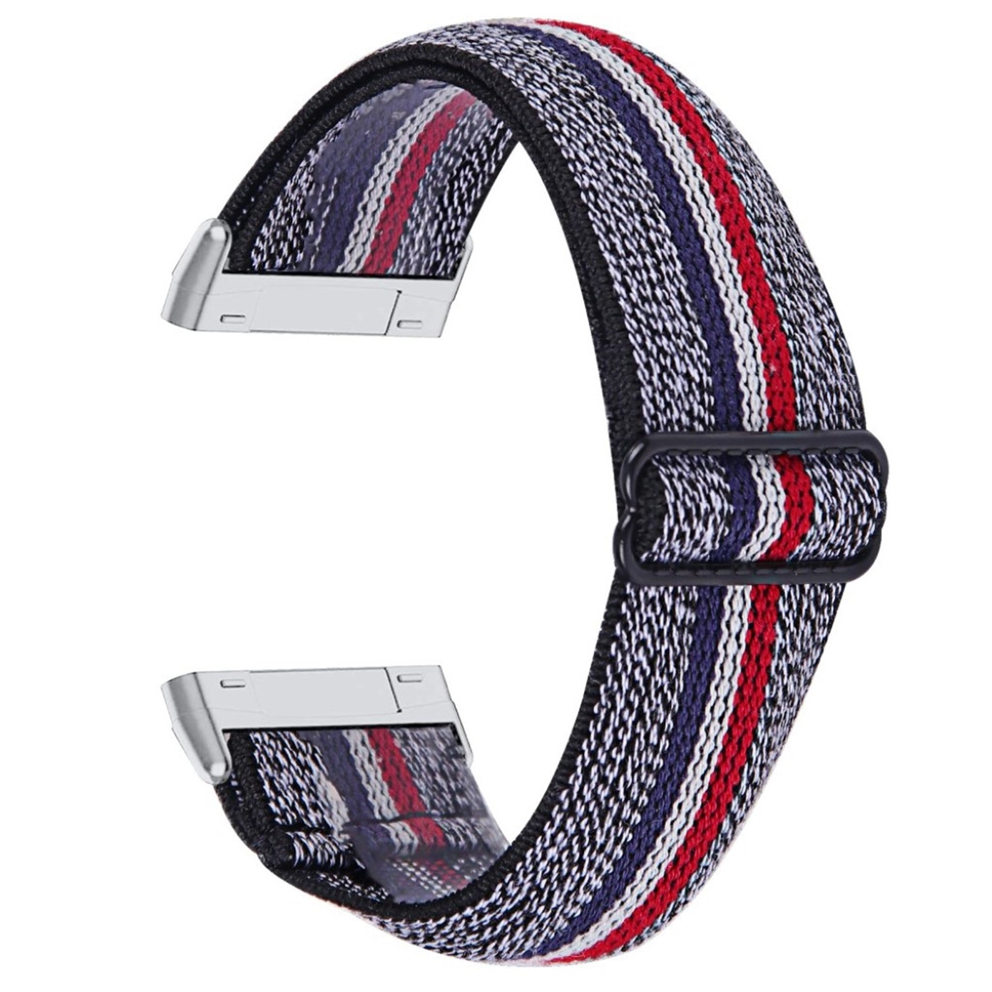 Woven Elastic Nylon Watch Band Replacement for Fitbit Versa 3/Sense - Blue / White / Red