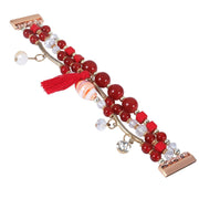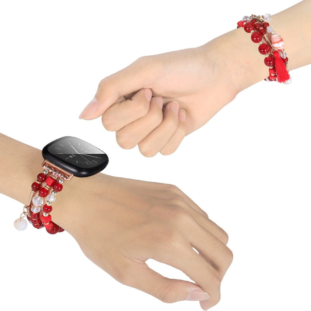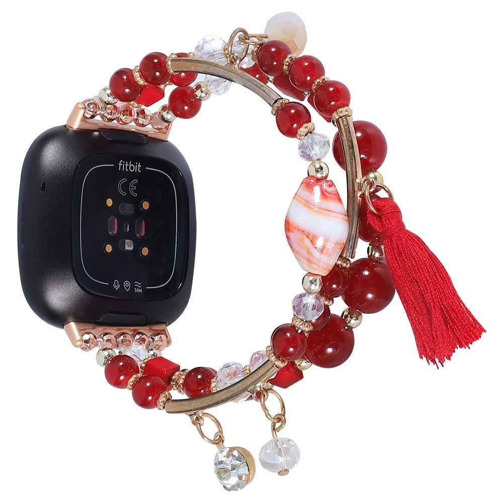 Fitbit Sense / Versa 3 stylish tassel adorned bead watch strap - Red