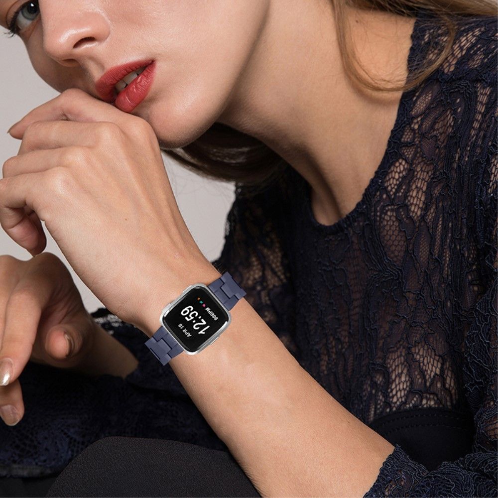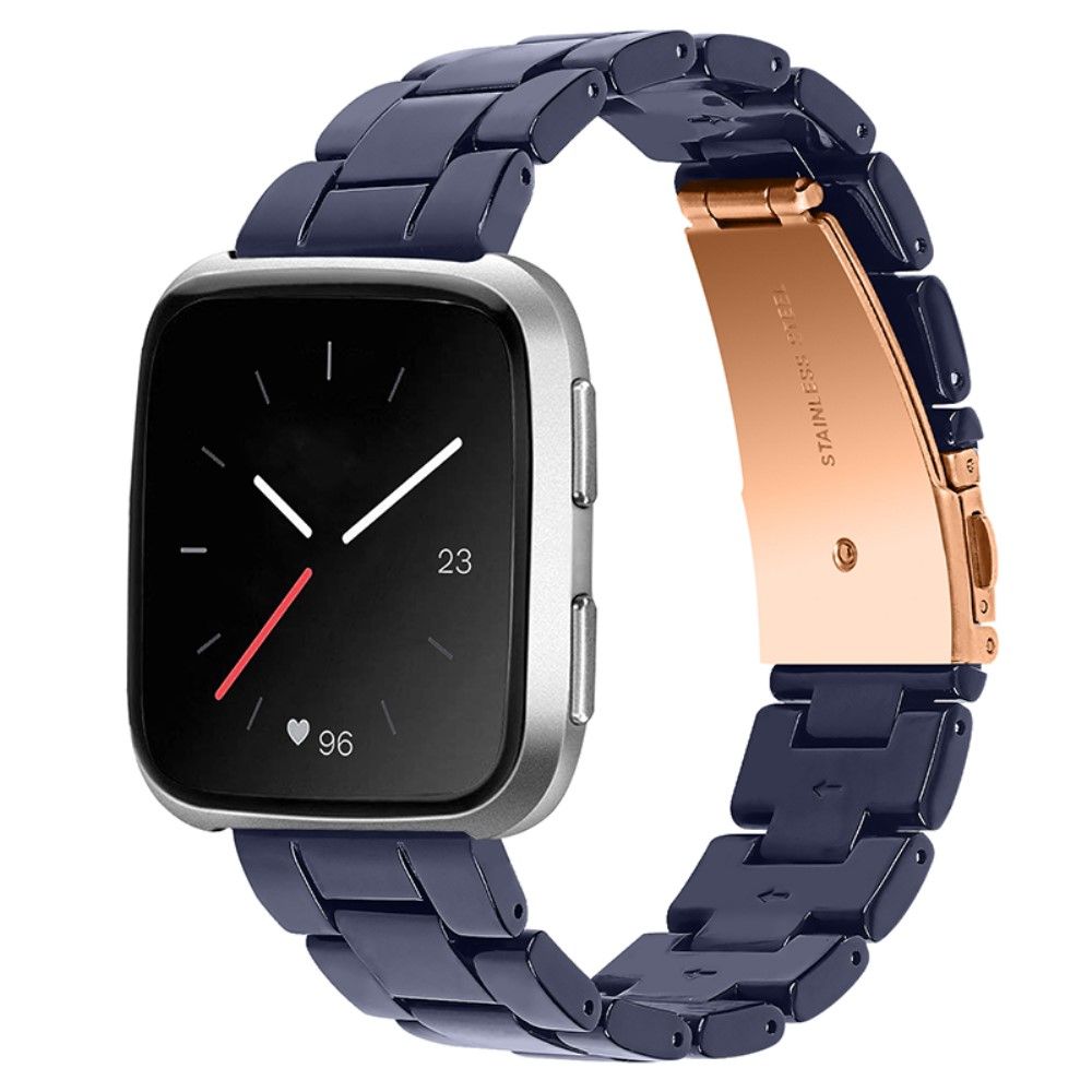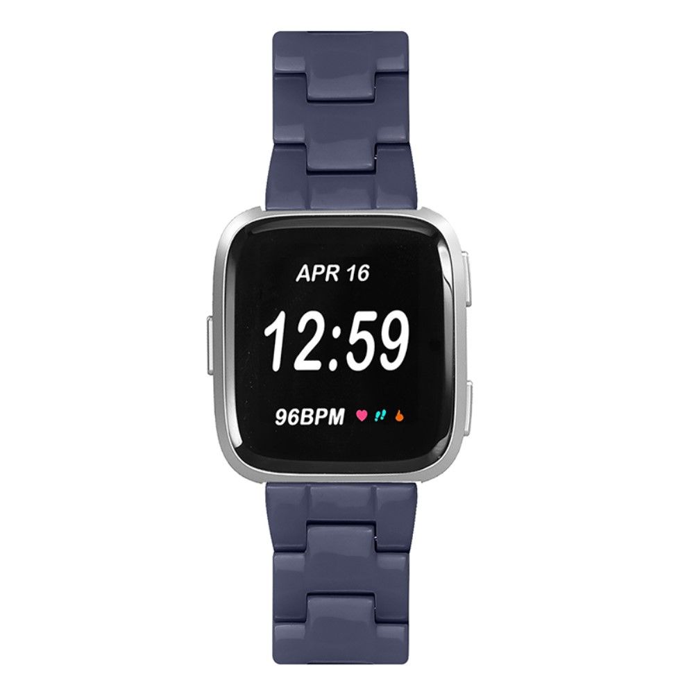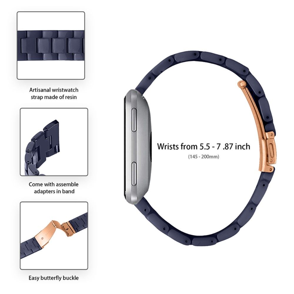 Quick Release 3 Beads Resin Watch Strap with Stainless Steel Folding Clasp for Fitbit Versa 2/Fitbit Versa/Versa Lite/Versa SE - Midnight Blue High-quality material: The strap is made of high-quality resin material, which is waterproof and rust-proof Hand-polished and excellent material: Each piece of resin is polished by experienced craftsmen. Combine with stainless steel double button folding clasp safe closure Flexible design: The three-bead resin strap has stainless steel adapter and folding clasp, which is easy to disassemble and replace Specifications: Material: resin, stainless steel Wrist circumference: 5.5-7.87 inch Compatible with: Fitbit Versa 2 Fitbit Versa Fitbit Versa Lite Fitbit Versa SE Package included: 1 x Watch Band Other things not included