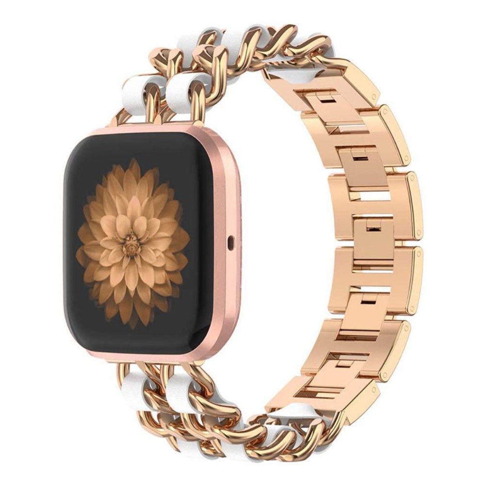 Stainless Steel + PU Leather Chain Watch Band Wrist Strap for Fitbit Versa/Versa 2/Versa Lite/Versa SE - Rose Gold / White Leather High-quality PU leather and stainless steel intertwined chain strap, looks gorgeous and fashionable Mirror polished design, using a special cold forging workmanship With a folding buckle, easy to remove extra links and fit, no complicated tools are required An ideal watch strap replacement for your old, broken one Specification: Material: stainless steel + PU Leather Wrist circumference: 5.1-8.9 inches Compatible with: Fitbit Versa/Versa 2/Versa Lite/Versa SE Package included: 1 x Smart Watch Strap Watch not included