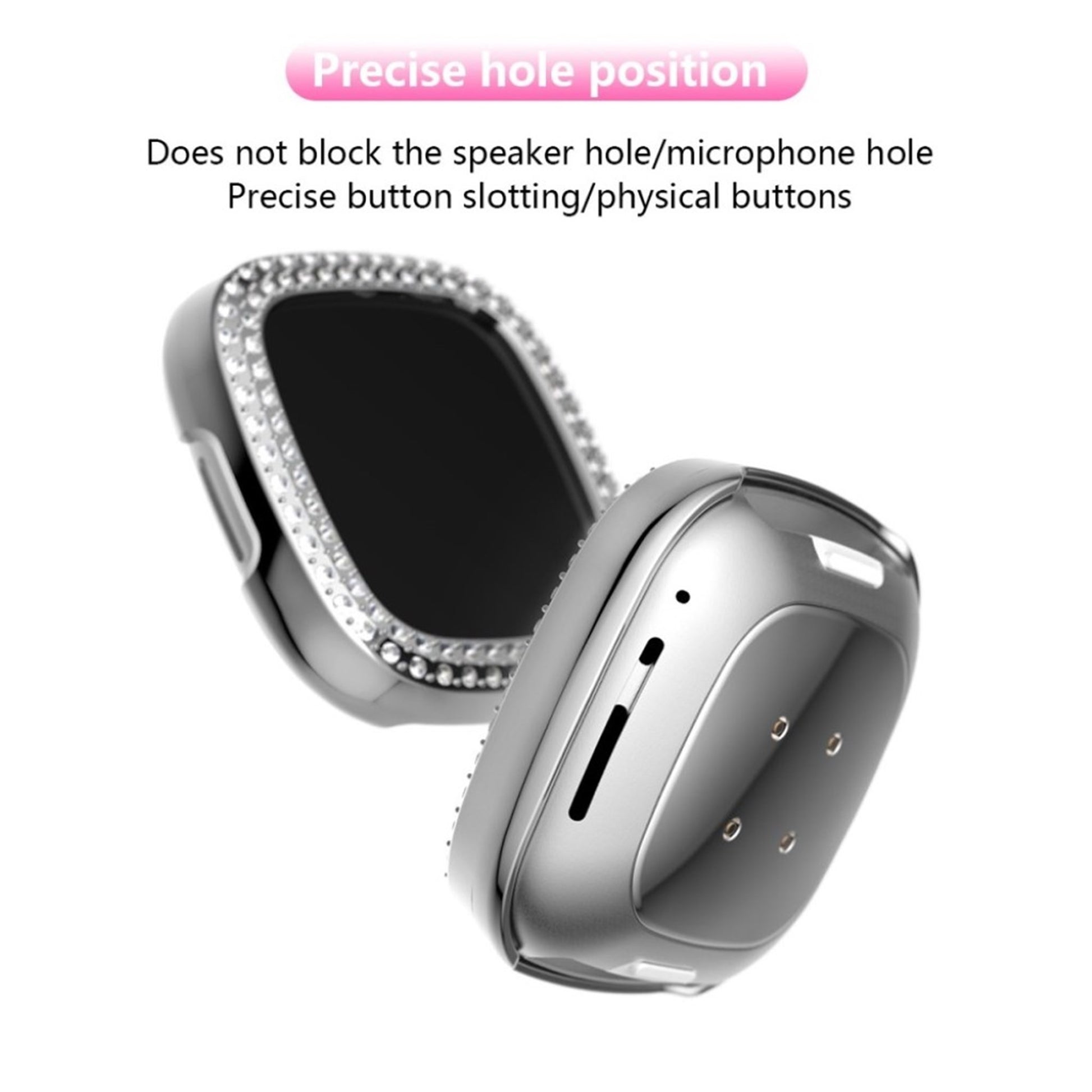 Double-row Rhinestone PC Hollow Electroplating Case (Support Power Charging with Case) for Fitbit Versa 3/Sense - Transparent - Silver Precise hole position, does not block the speaker hold/microphone hold Precise button slotting/physical buttons Double rows rhinestone PC hollow protective shell Support power charging with the case Stylish and unique design Compatible with: Fitbit Sense Fitbit Versa 3 Package included: 1 x Double-row Rhinestone PC Hollow Electroplating Case (Support Power Charging with Case)