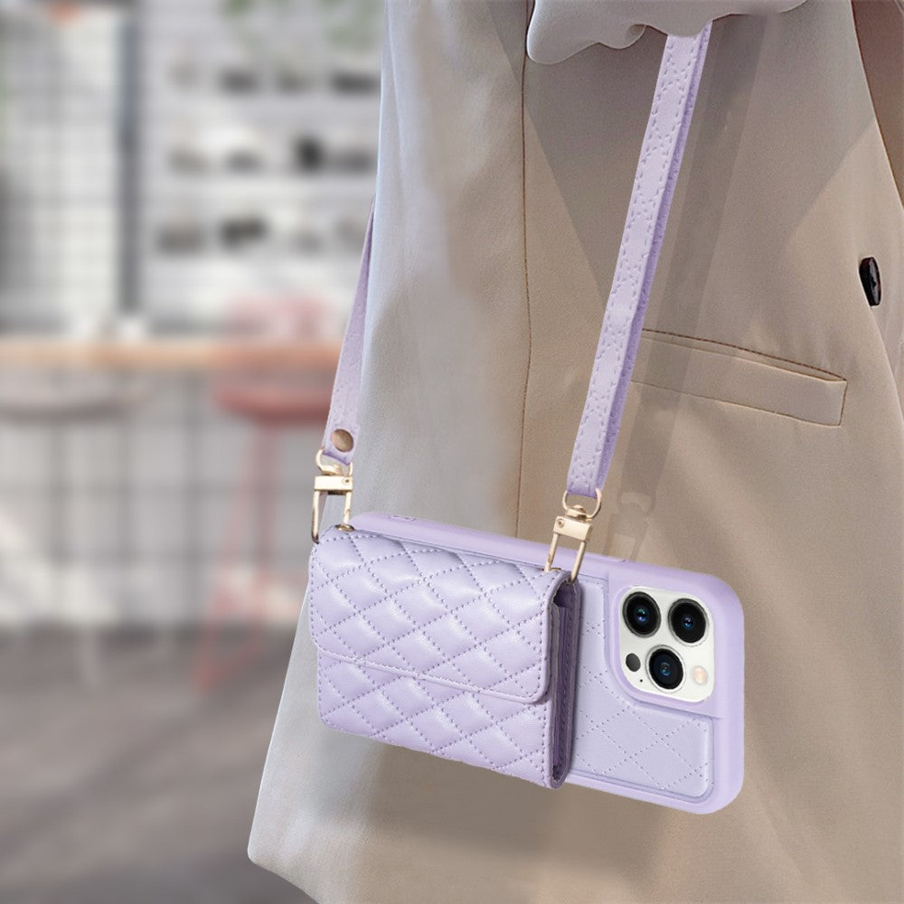 Crafted with premium PU leather and flexible TPU inner, this case offers dual protection, ensuring your phone stays safe and trendy. The sew stitching lines create a chic rhombus grid texture, adding a fashionable touch. It features a wallet design, allowing you to conveniently store your cash and cards. Plus, the foldable stand provides adjustable viewing angles for easy hands-free use. With a secure magnetic closure, your cards and phone remain safely enclosed. This case offers full-body protection against scratches and damage. Additionally, the reserved receiver hole enables you to talk on the phone even with the case closed. For added convenience, it comes with a strap for easy carrying. Stay stylish and protected with this versatile phone case!