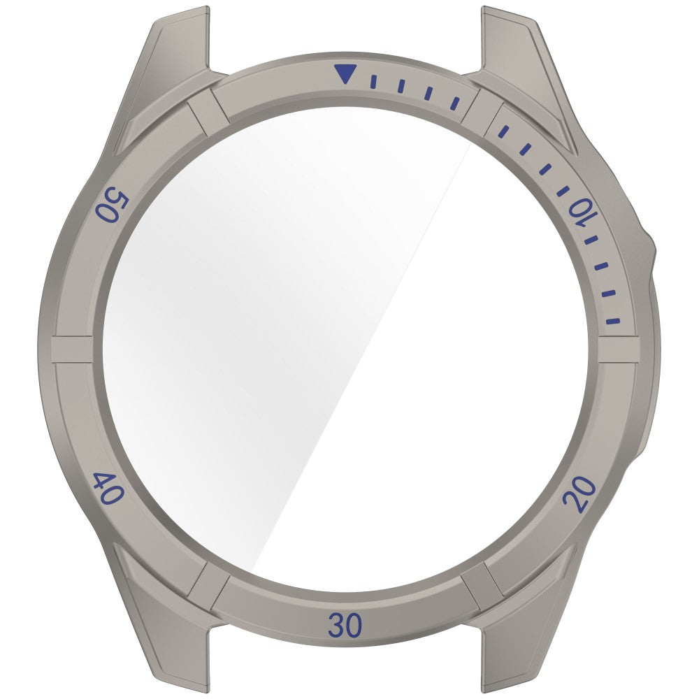 Garmin Fenix 8 43mm Watch Case PC Frame Cover with Tempered Glass Screen Film - Titanium Steel+Blue