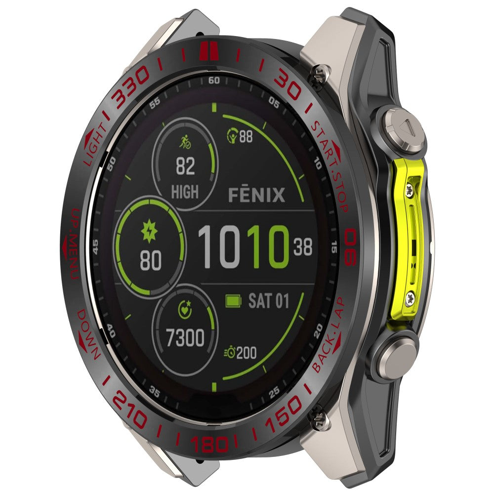 Garmin Fenix 8 51mm AMOLED Version Stainless Steel Bezel Scratch Resistant Protective Ring - Black+Red